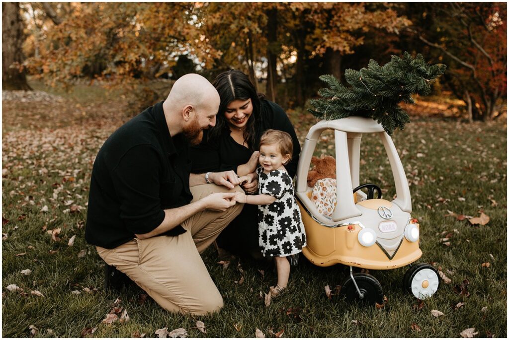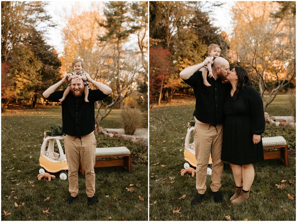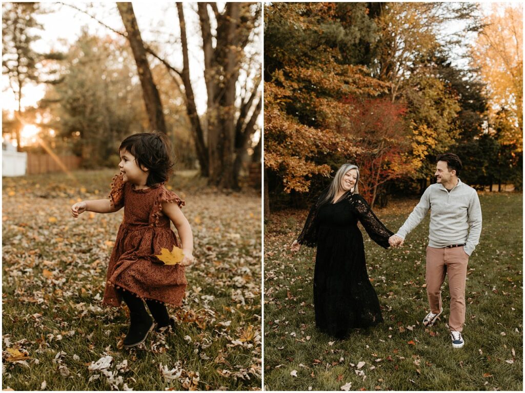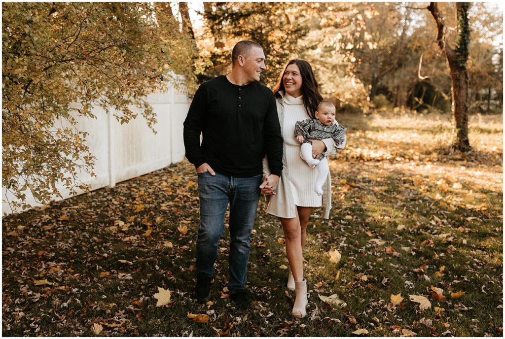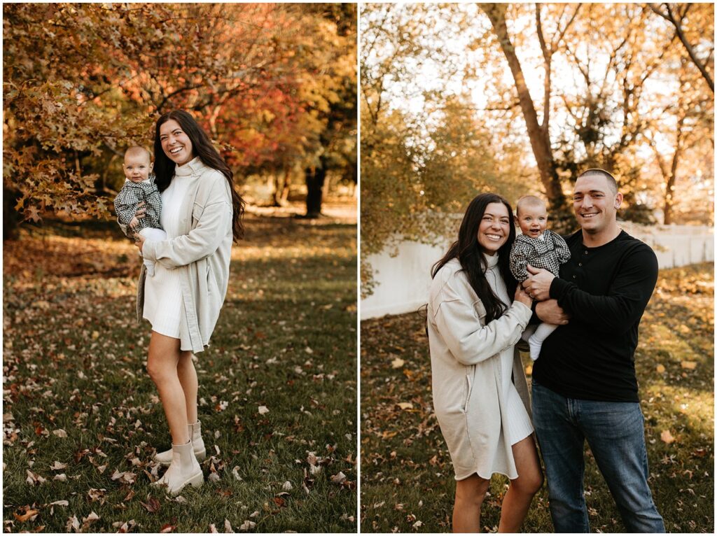 There’s something so special about fall and the ‘Ber months, right?! Plus, you can’t beat golden sunset and cozy fall leaves. These seasonal backyard fall holiday mini sessions are a quick and easy way to preserve big memories in just a short amount of time. I love getting to see familiar faces returning year after year, and meeting new couples and families for the first time always adds to the fun! This round of minis was all families that I knew – two couples whose engagement photos I took, a couple whose wedding I photographed, and a family who I became friends with through the wedding industry!
