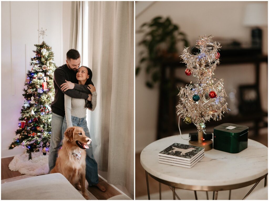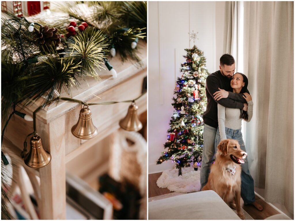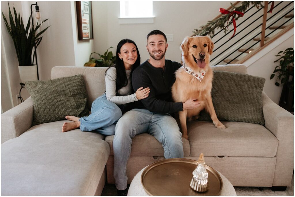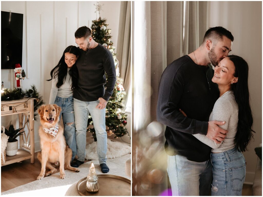 Oh my goodness, the sweetest way to wrap up Tori and Connor’s multiday engagement session was with a Christmas in-home engagement session with their adorable dog, Kevin! When we realized that the locations from day one and day two may not be the most dog-friendly, we knew we had to spend a little bit of time at home with Kevin!! I mean, LOOK AT HIM!