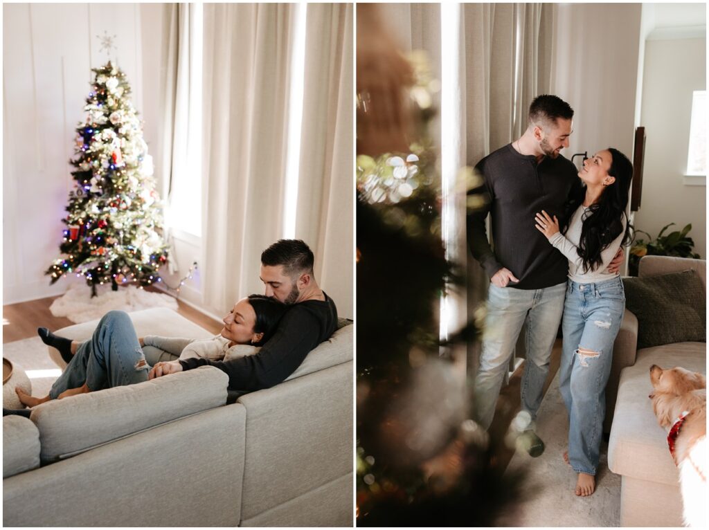 Their Christmas decorations were up in their beautiful home, so it was a perfectly cozy vibe for a slow morning together. After a few days of pictures in the chilly Charlotte weather, we kept it casual and focused on them in their space and with their furbaby!