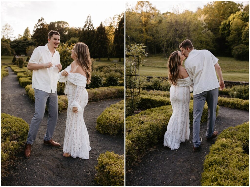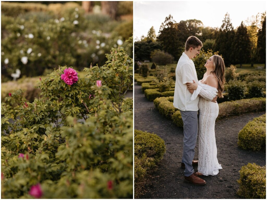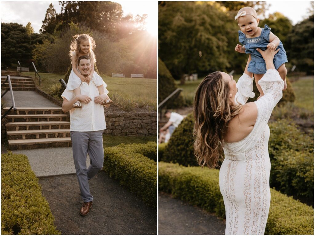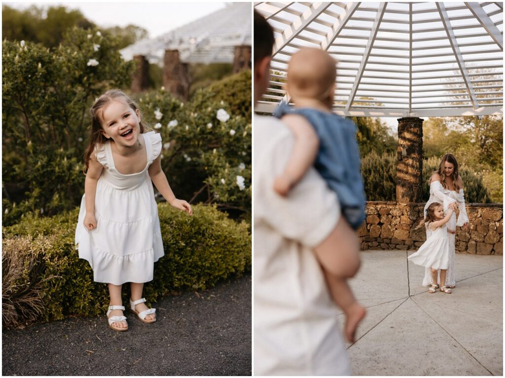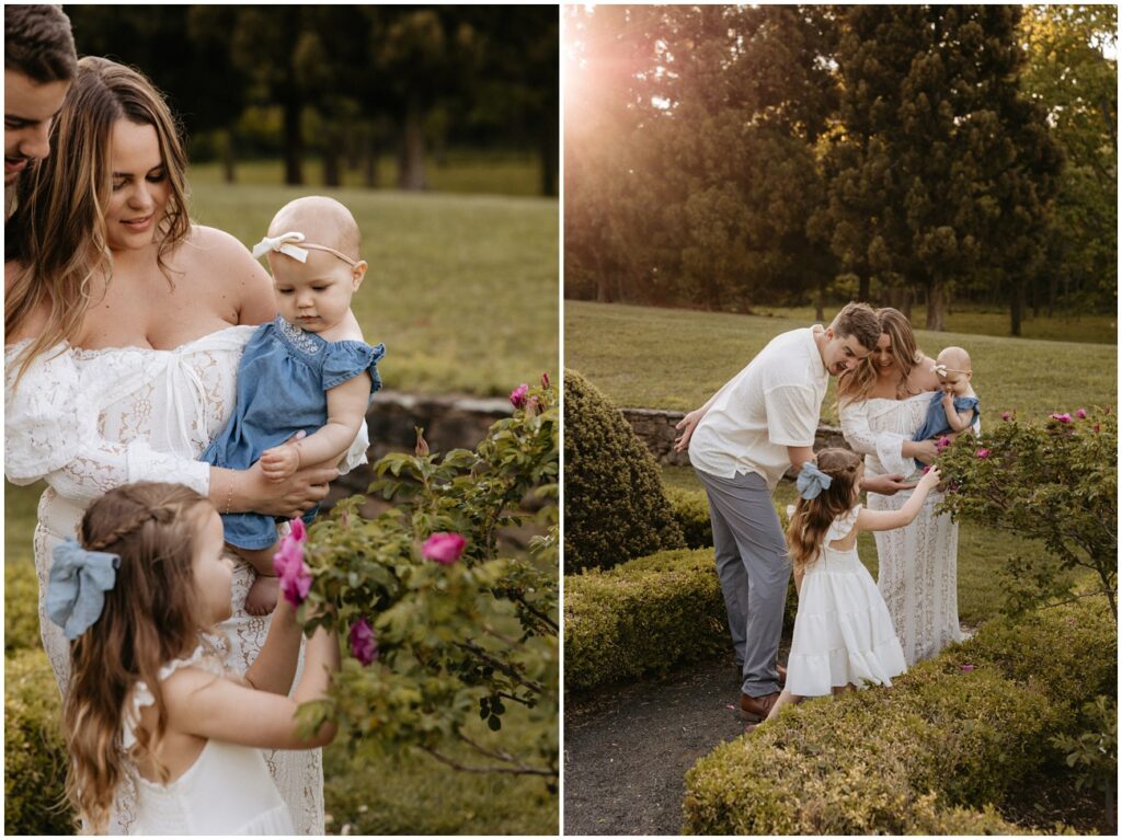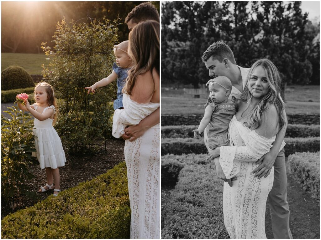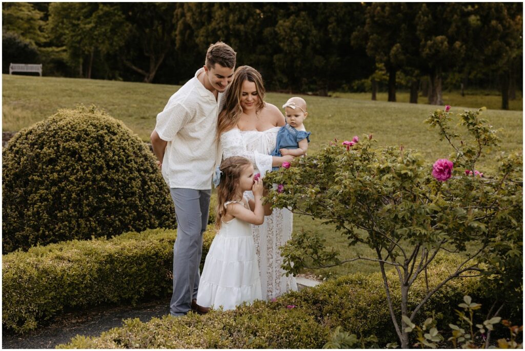 We started their session at the gorgeously in-bloom Deep Cut Gardens, where they explored the hedge mazes and flowers with their daughters! It was so fun seeing the amazing personalities their 2 little ones possess, and how sweet their sisterhood is at such a young age. I’m so glad we could combine their engagement photos into a little family session, as well!