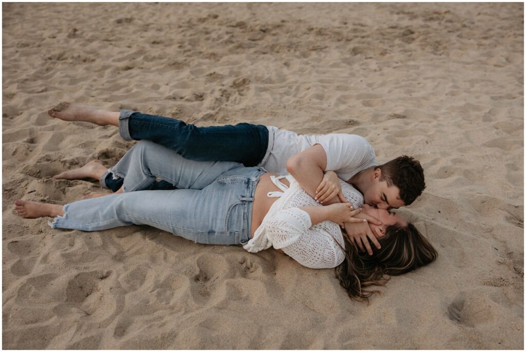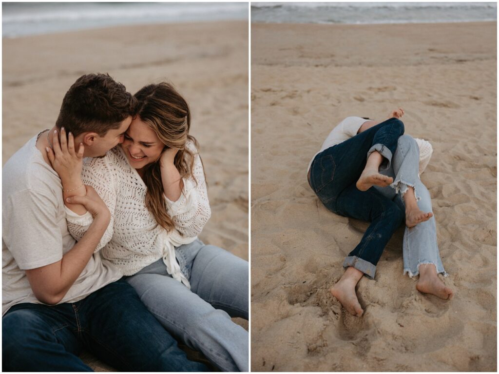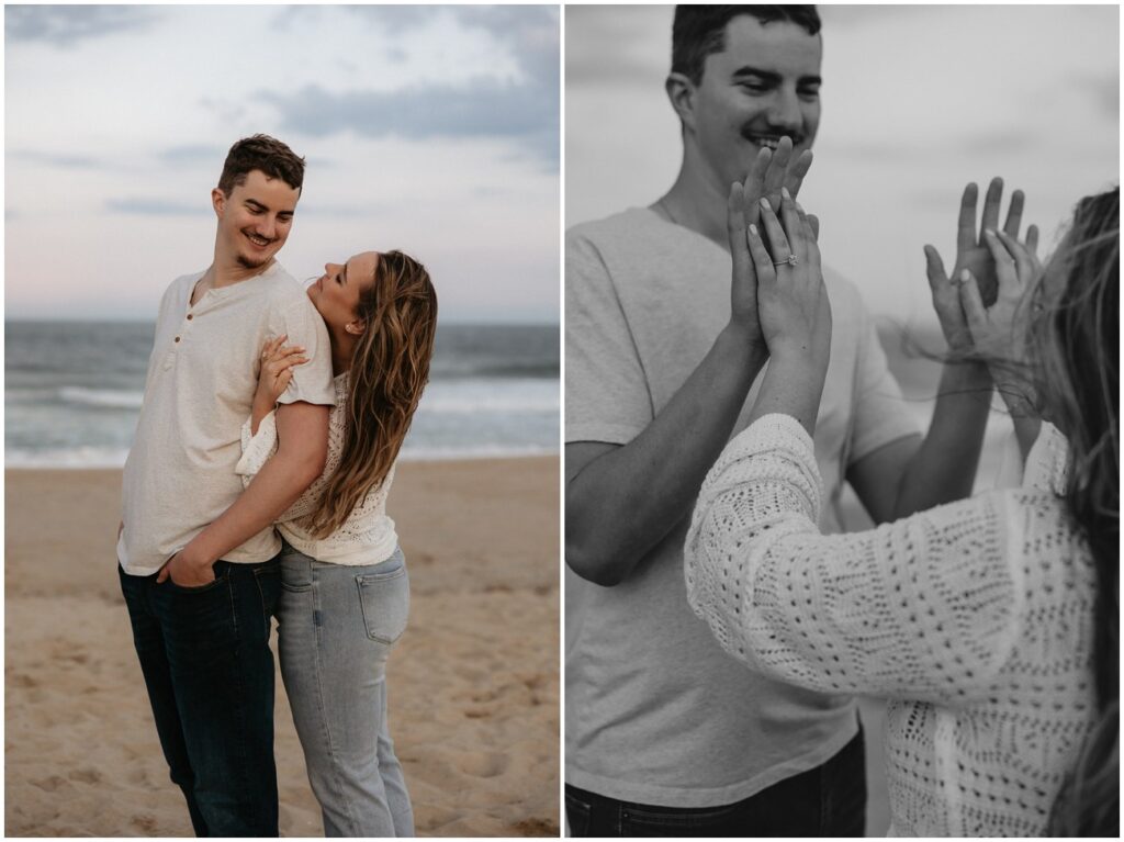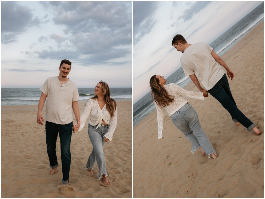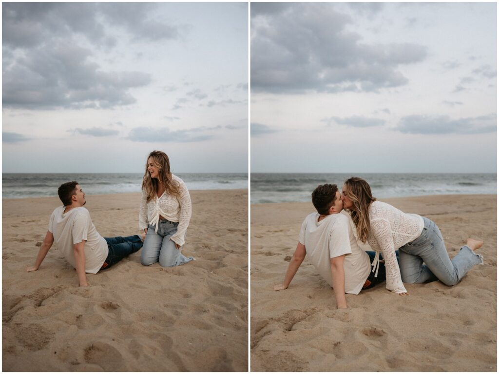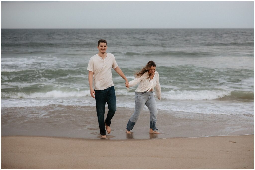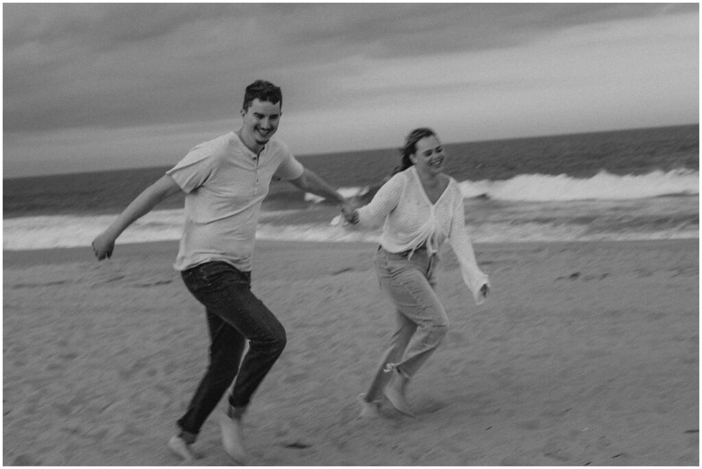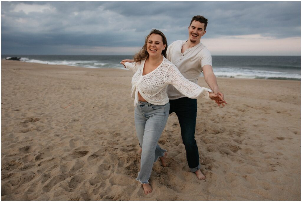 Once their kiddos went off with their grandma for the evening, we continued on with photos of just Emily and Shawn at Long Branch beach for sunset! With all of the beach locations in New Jersey to choose from, Long Branch is always one of my favorites for it’s quiet and romantic vibe. These two fully embraced the cloudy skies and windy weather for their playful pictures at the shore. Shawn loved the beach to say the least – he was running around, jumping in the water, and truly SO excited to be there. Their energy was infectious, and I don’t think we stopped smiling and laughing the entire evening!