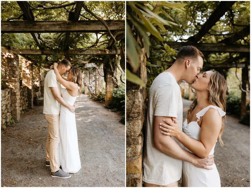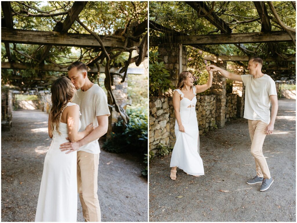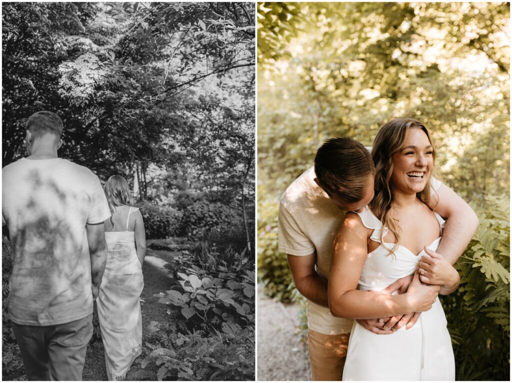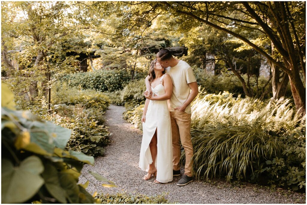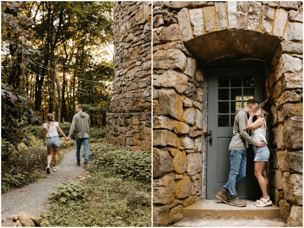 Cross Estate Gardens is one of my favorite New Jersey engagement session locations because of the variety it offers in a small amount of space! Plus, it’s free to photograph there – such a win! We had everything from romantic and lush gardens to plenty of fields for Arya to explore to the stone tower and sweeping trees that make you feel like you’ve been transported to the PNW! Alyssa and Colin came prepared with fancy and casual outfits, which allowed us to capture a ton of fun moments, especially toward the night as they were running and jumping all over the place!