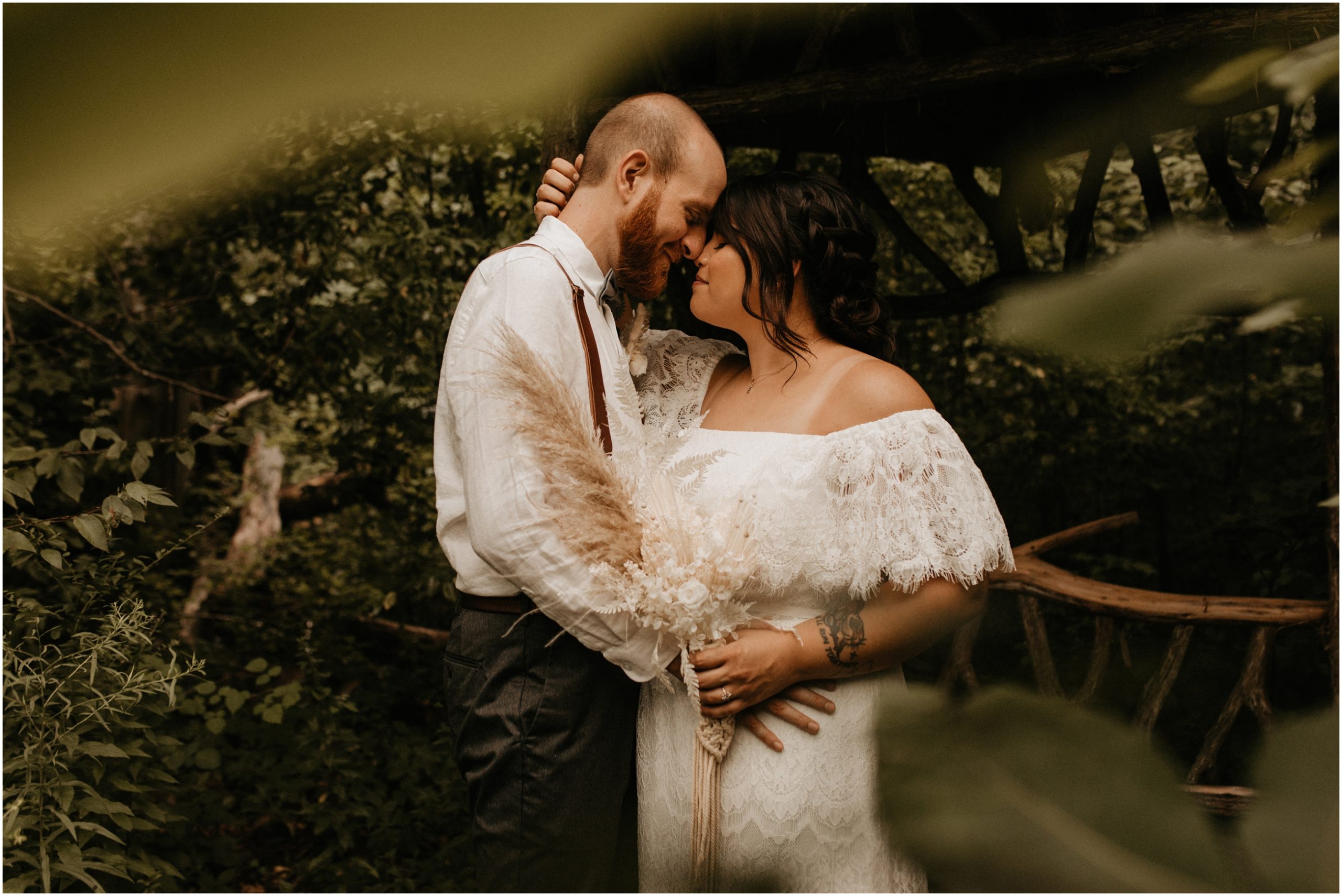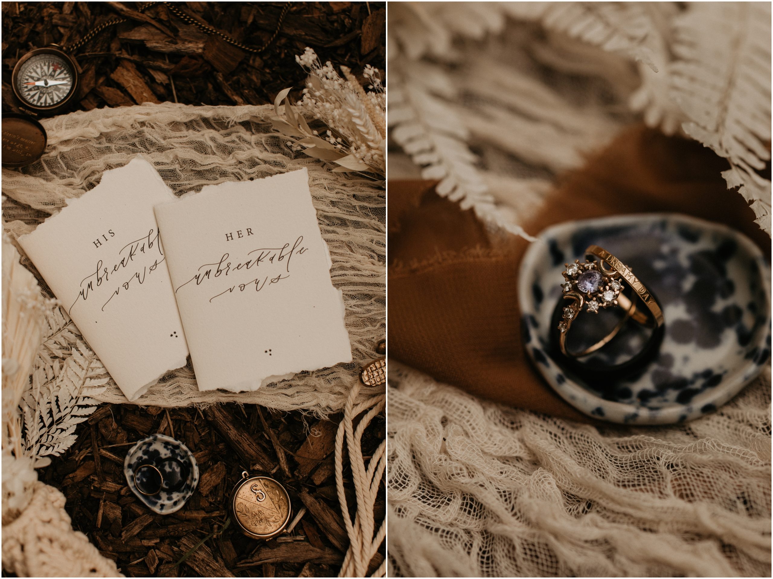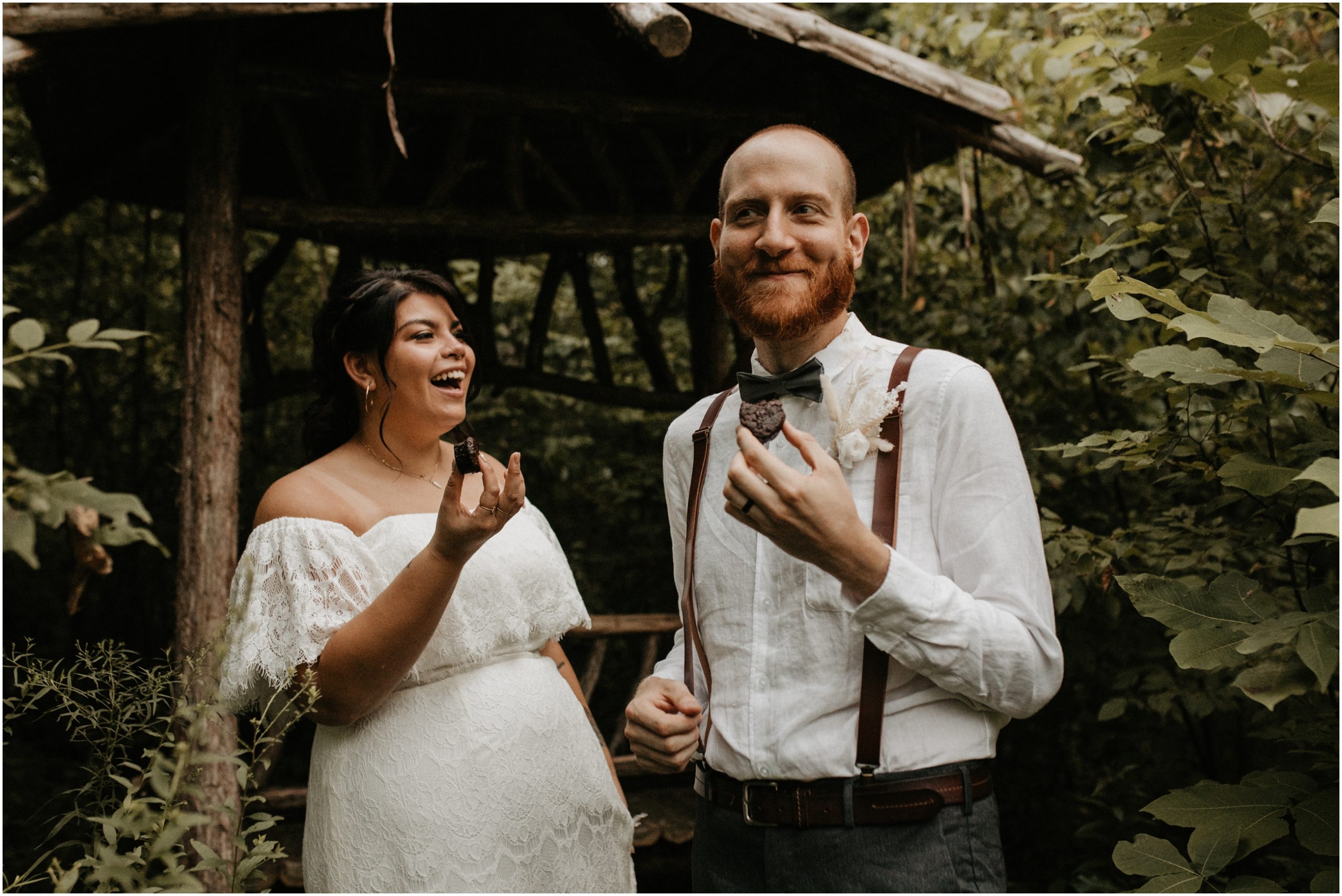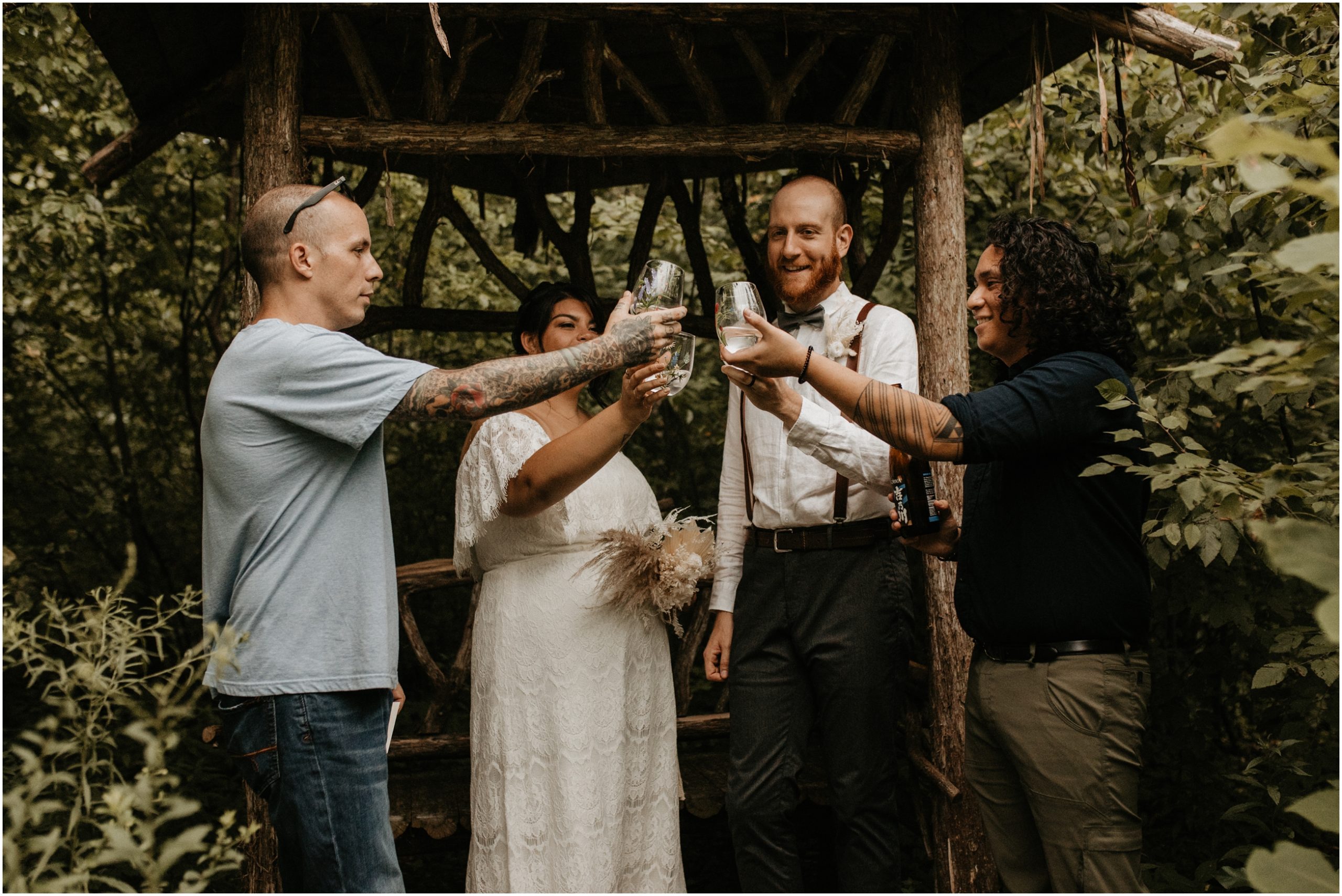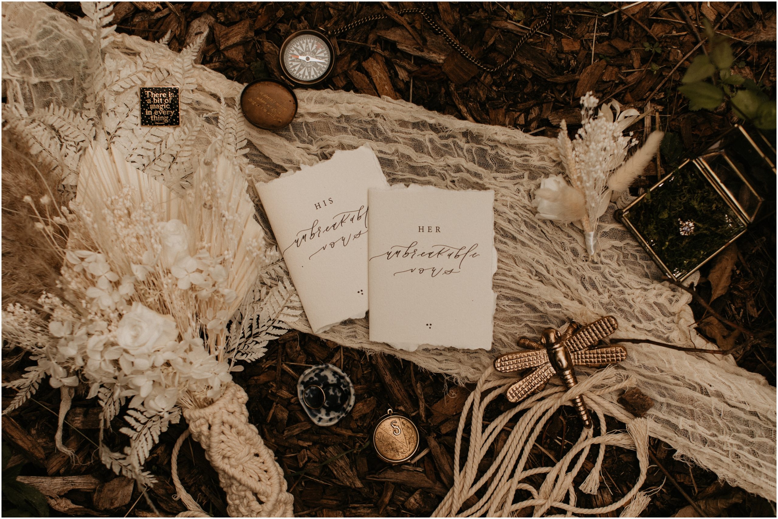 They found this hidden whimsical elopement spot just a day or so before their big day, and it all worked out so perfectly! It was totally secluded and absolutely stunning. I loved how engulfed in nature we felt, as these two are vegans like me, and I know nature means a lot to them! They’re up for any hiking adventure, like their waterfall engagement session in another part of this same reservation! Ahhh, this elopement was relaxed, romantic, and so totally THEM from their celestial details to their moody portraits to their vegan brownies and Saki to celebrate! Such a perfect day!!
