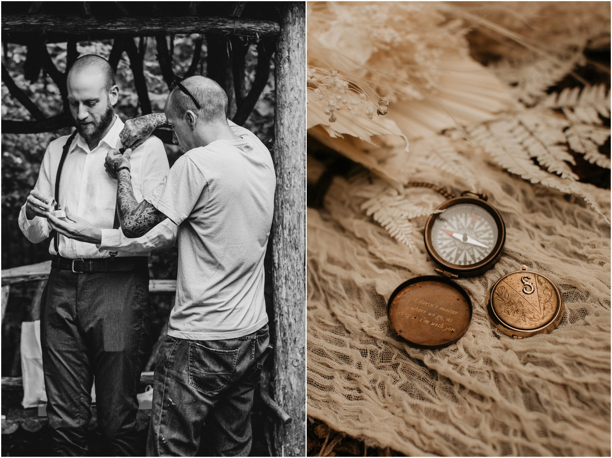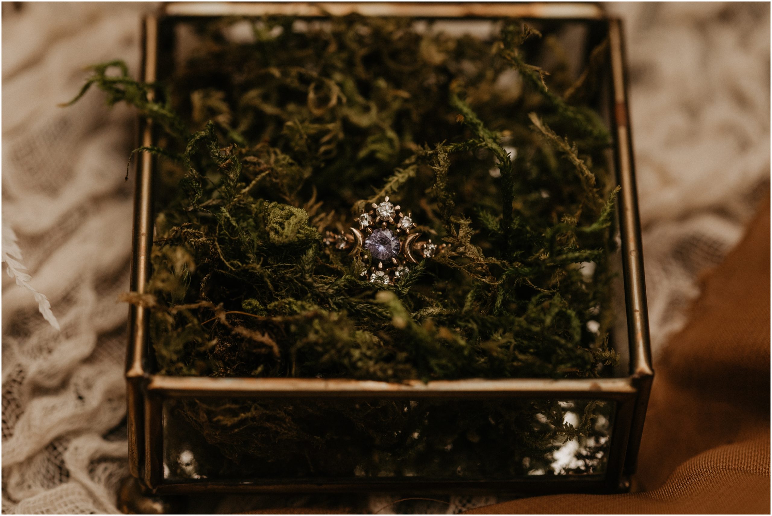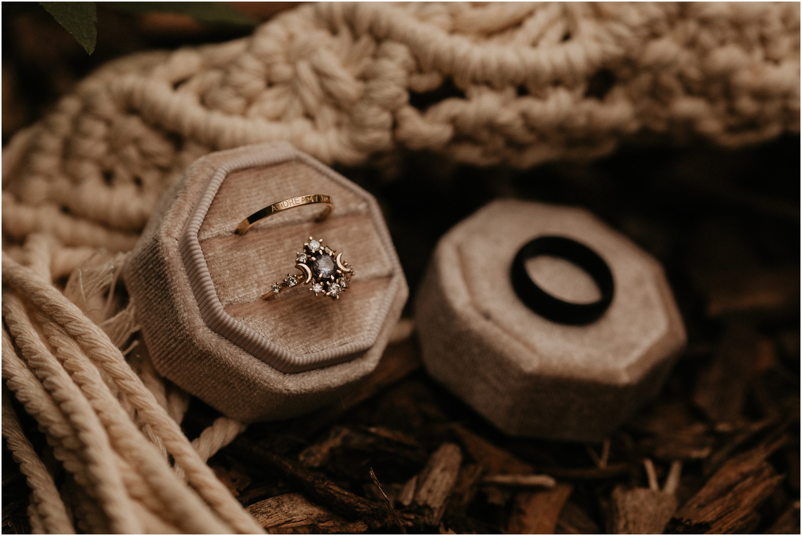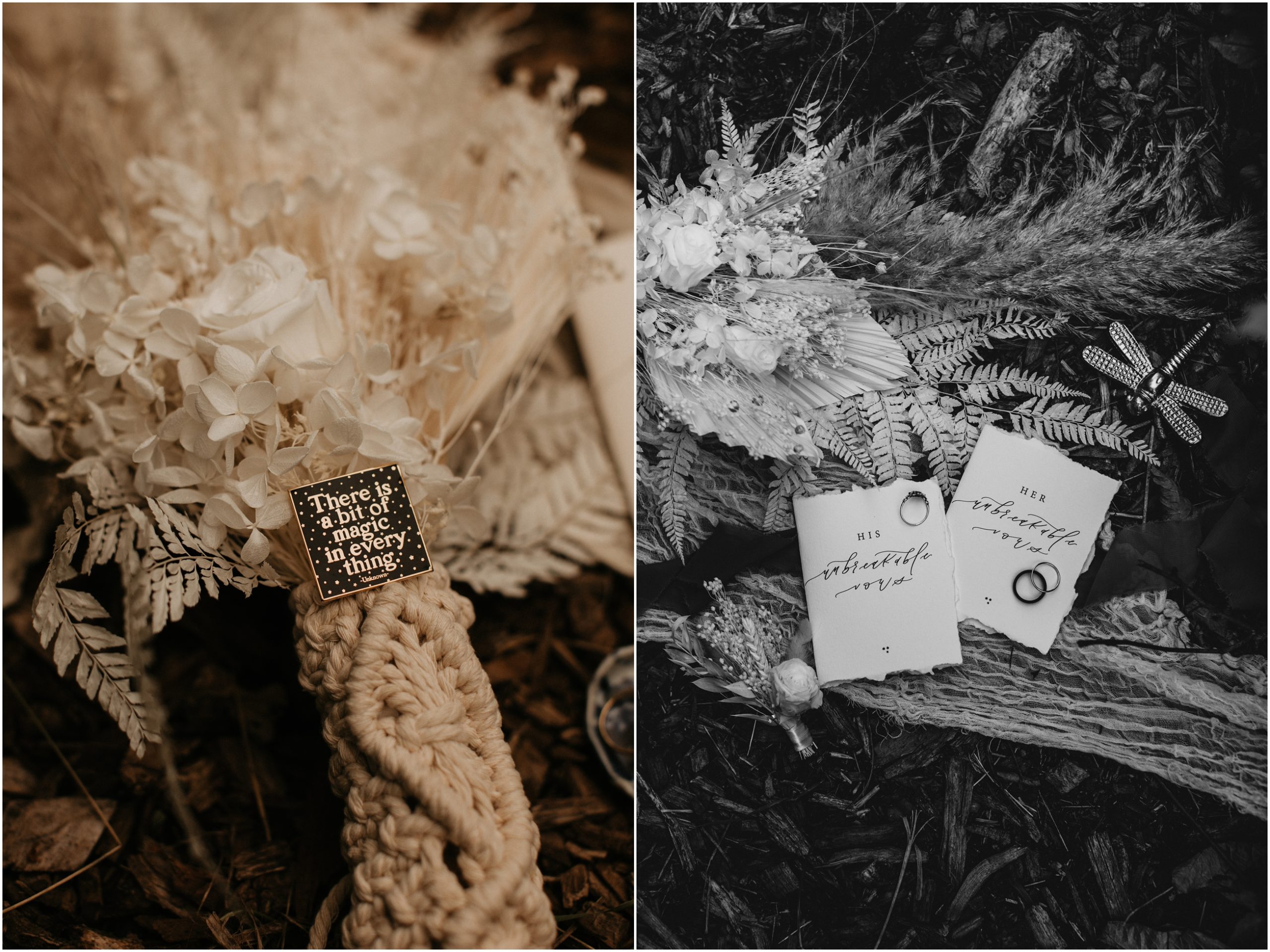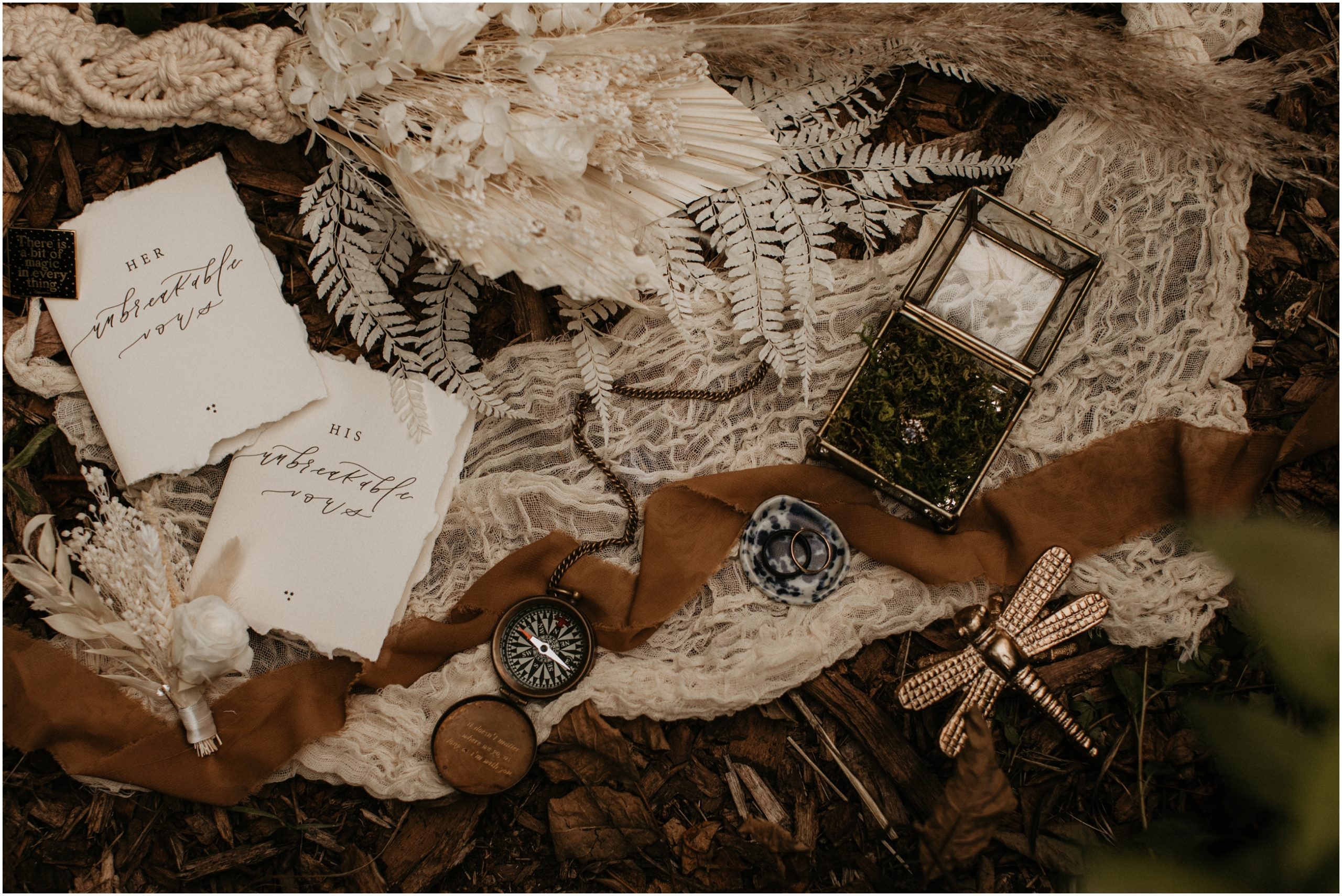 They found this hidden whimsical elopement spot just a day or so before their big day, and it all worked out so perfectly! It was totally secluded and absolutely stunning. I loved how engulfed in nature we felt, as these two are vegans like me, and I know nature means a lot to them! They’re up for any hiking adventure, like their waterfall engagement session in another part of this same reservation! Ahhh, this elopement was relaxed, romantic, and so totally THEM from their celestial details to their moody portraits to their vegan brownies and Saki to celebrate! Such a perfect day!!
