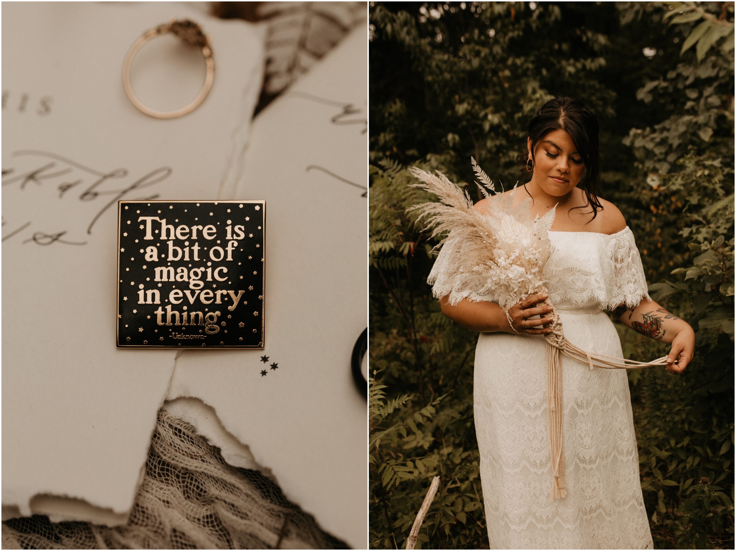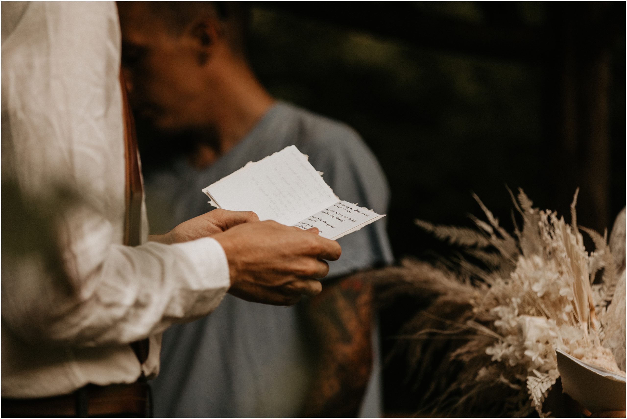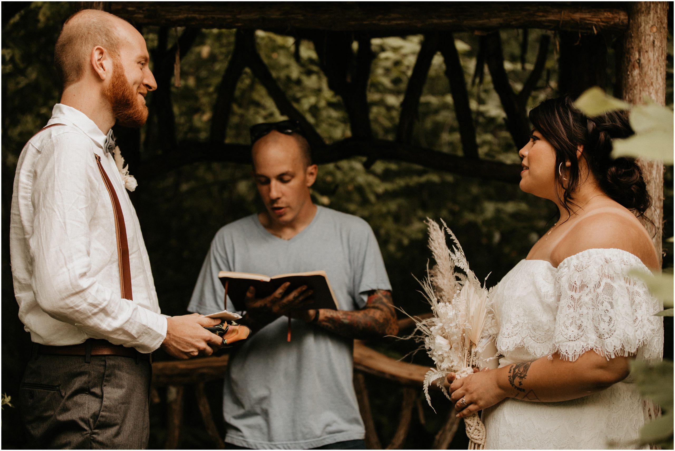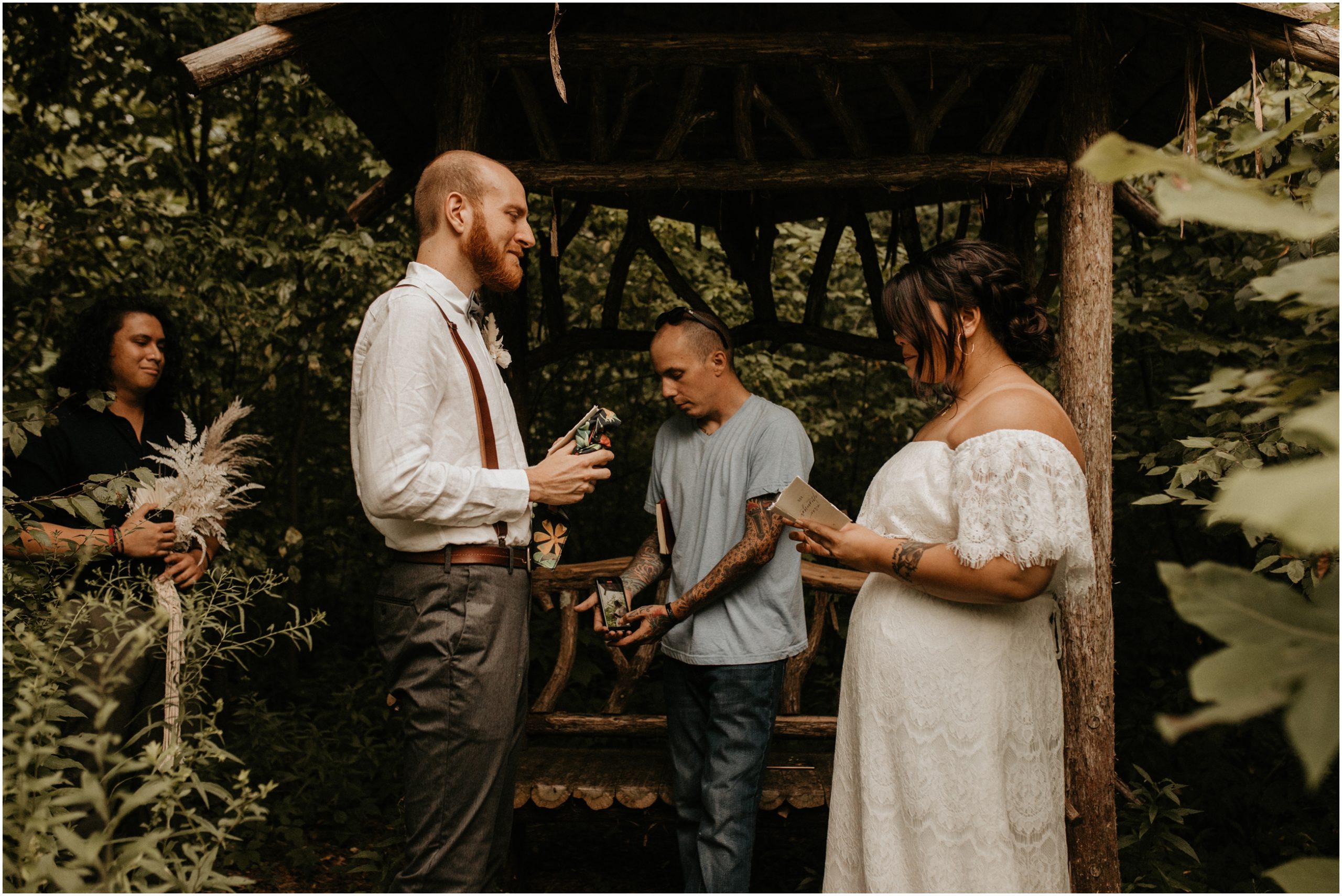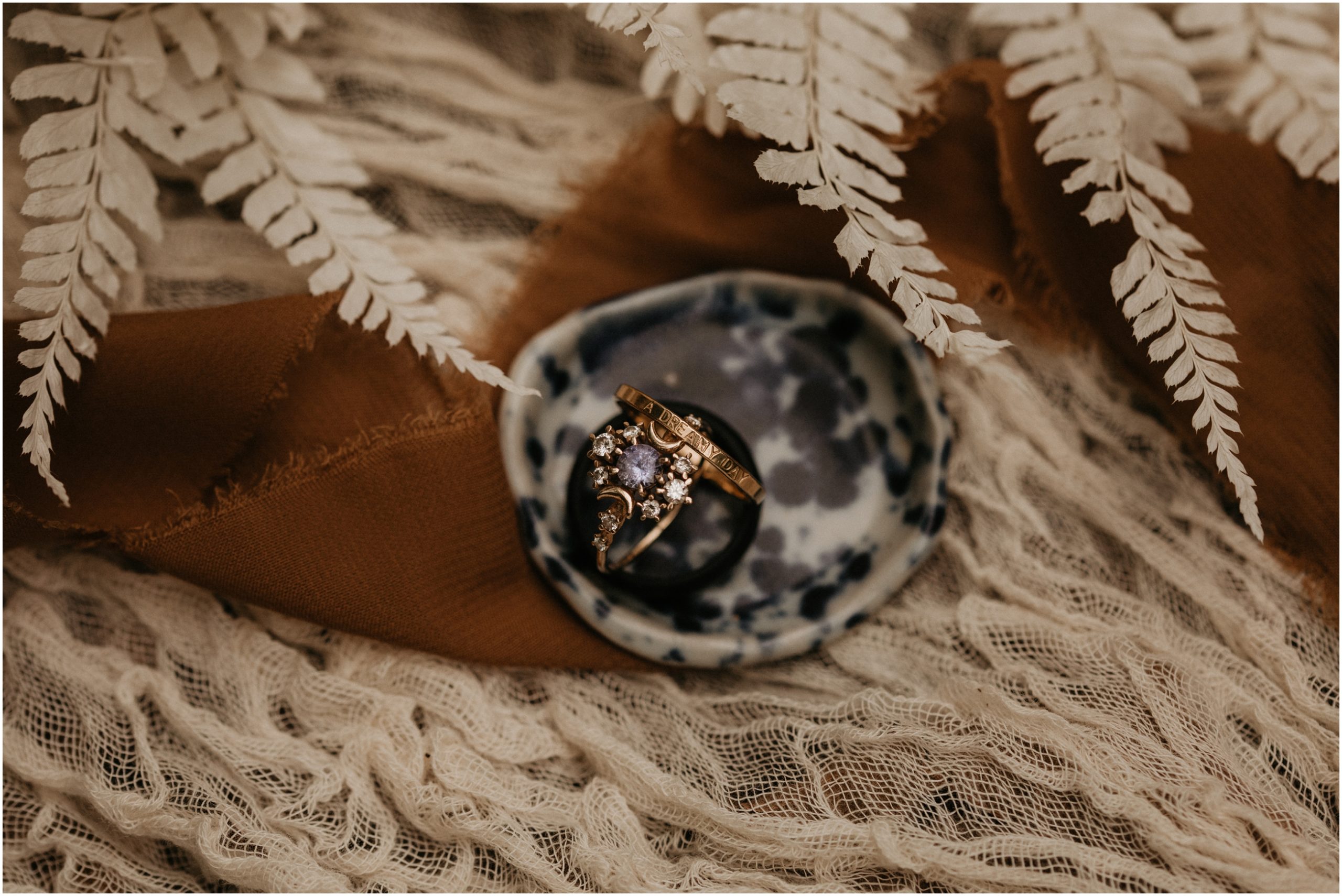 They found this hidden whimsical elopement spot just a day or so before their big day, and it all worked out so perfectly! It was totally secluded and absolutely stunning. I loved how engulfed in nature we felt, as these two are vegans like me, and I know nature means a lot to them! They’re up for any hiking adventure, like their waterfall engagement session in another part of this same reservation! Ahhh, this elopement was relaxed, romantic, and so totally THEM from their celestial details to their moody portraits to their vegan brownies and Saki to celebrate! Such a perfect day!!