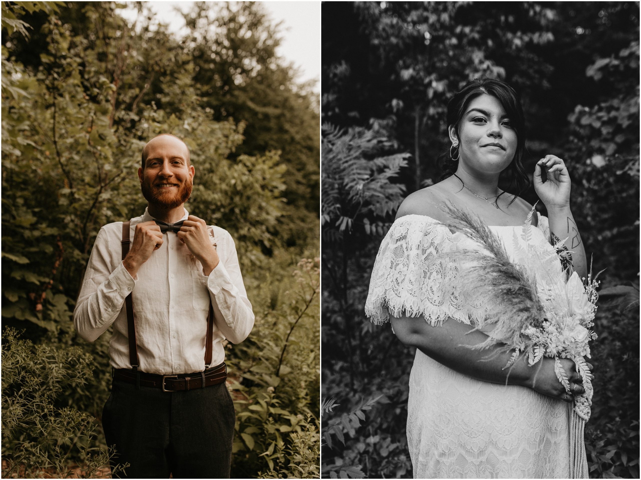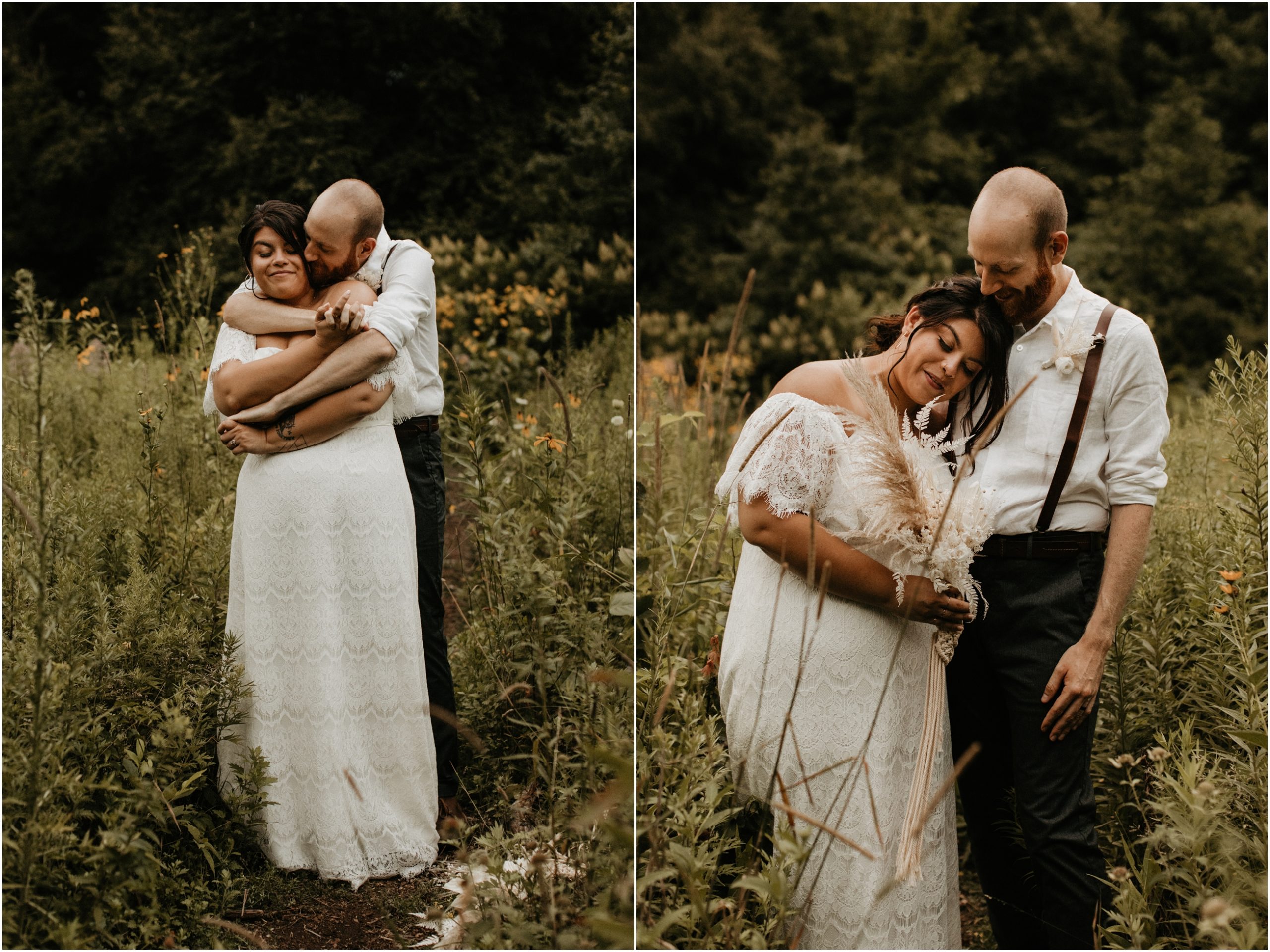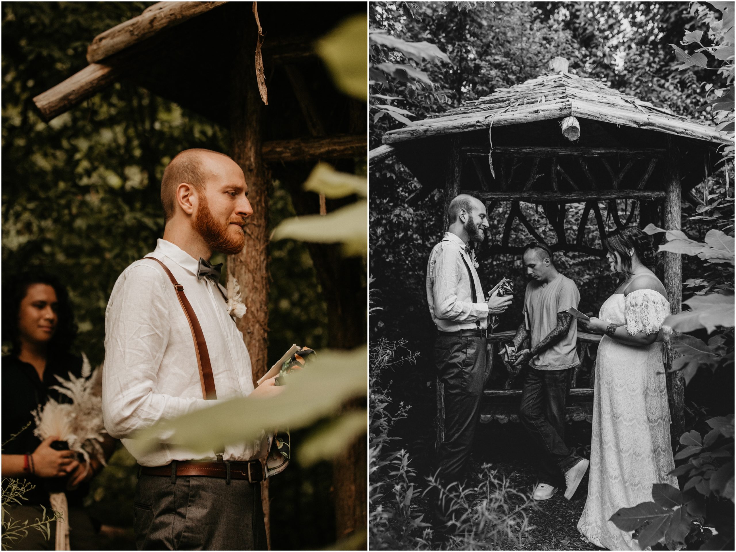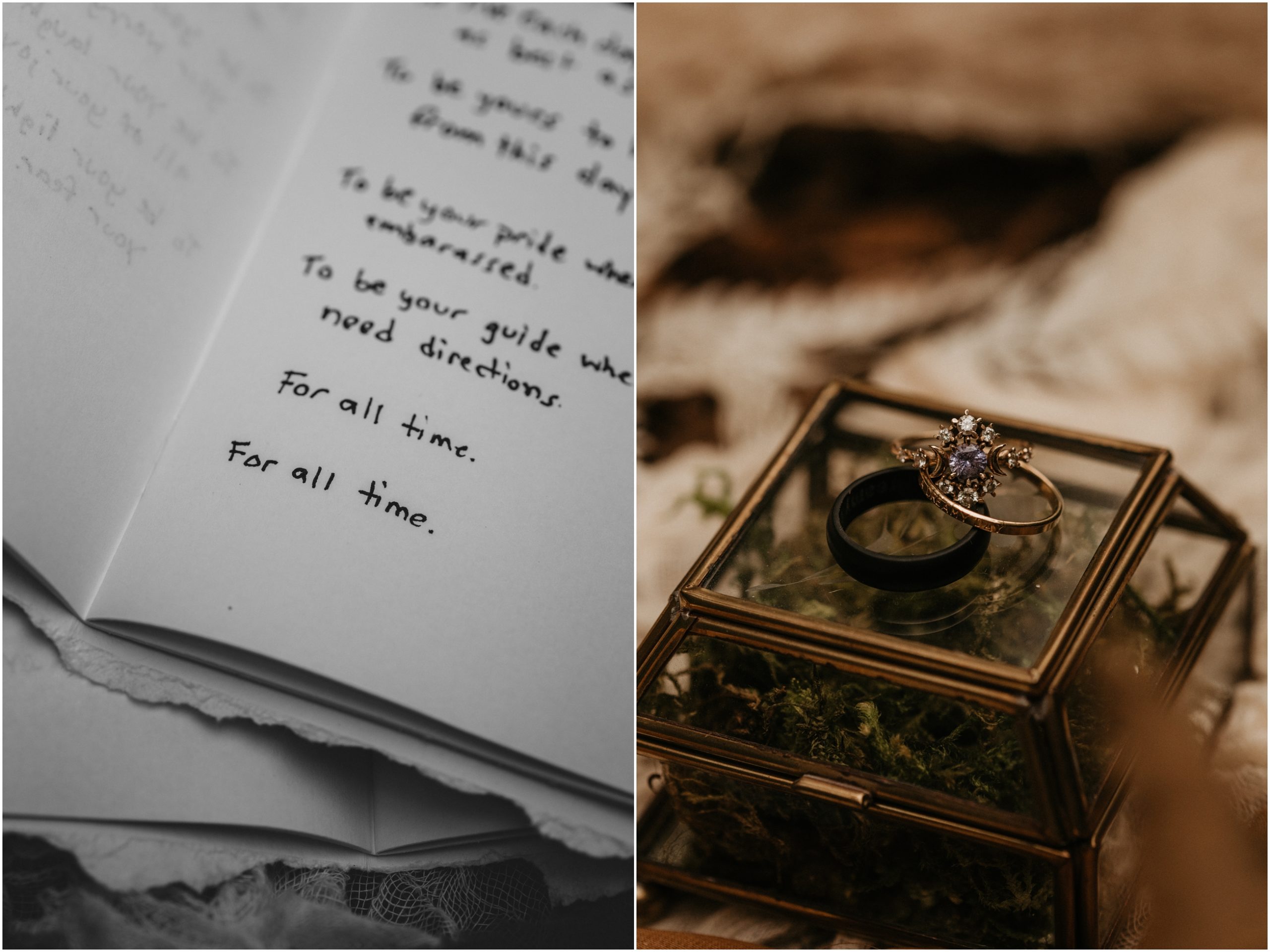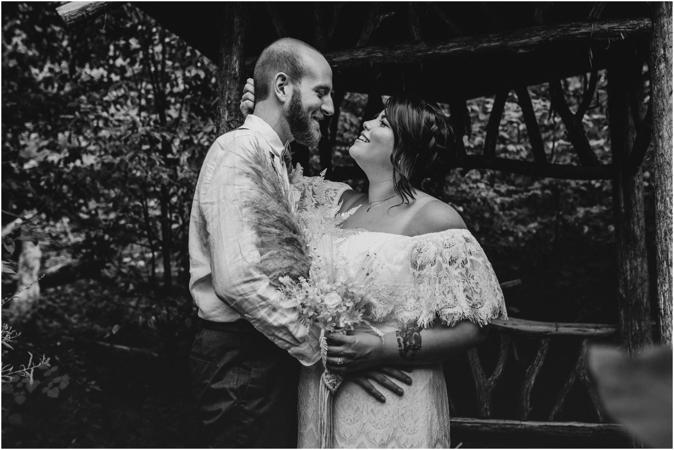 They found this hidden whimsical elopement spot just a day or so before their big day, and it all worked out so perfectly! It was totally secluded and absolutely stunning. I loved how engulfed in nature we felt, as these two are vegans like me, and I know nature means a lot to them! They’re up for any hiking adventure, like their waterfall engagement session in another part of this same reservation! Ahhh, this elopement was relaxed, romantic, and so totally THEM from their celestial details to their moody portraits to their vegan brownies and Saki to celebrate! Such a perfect day!!