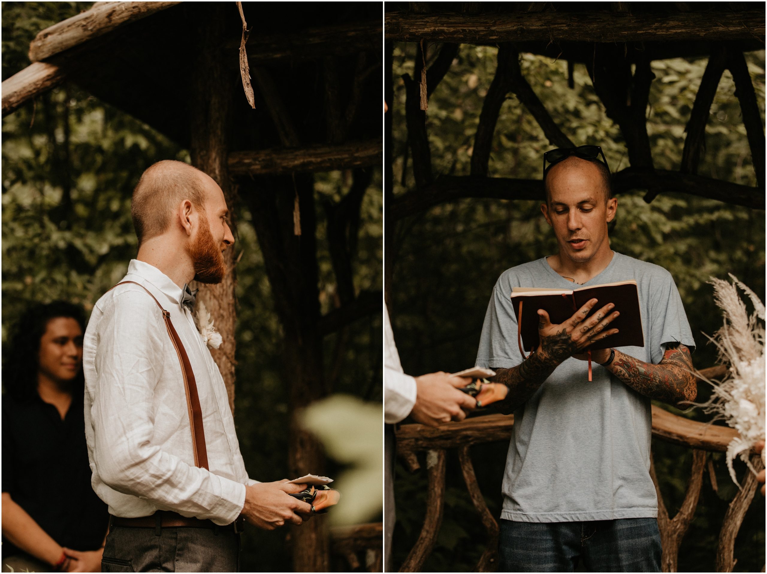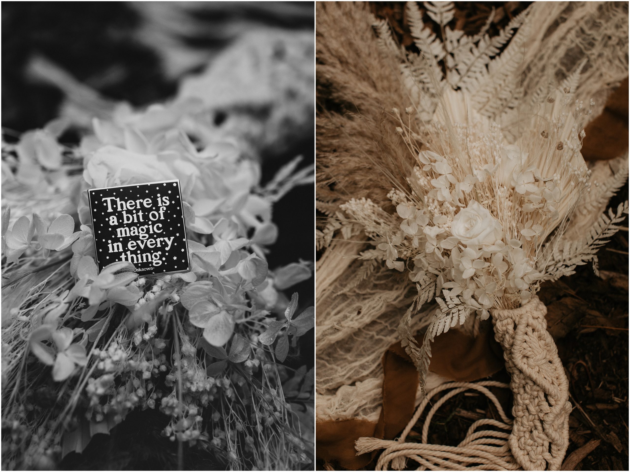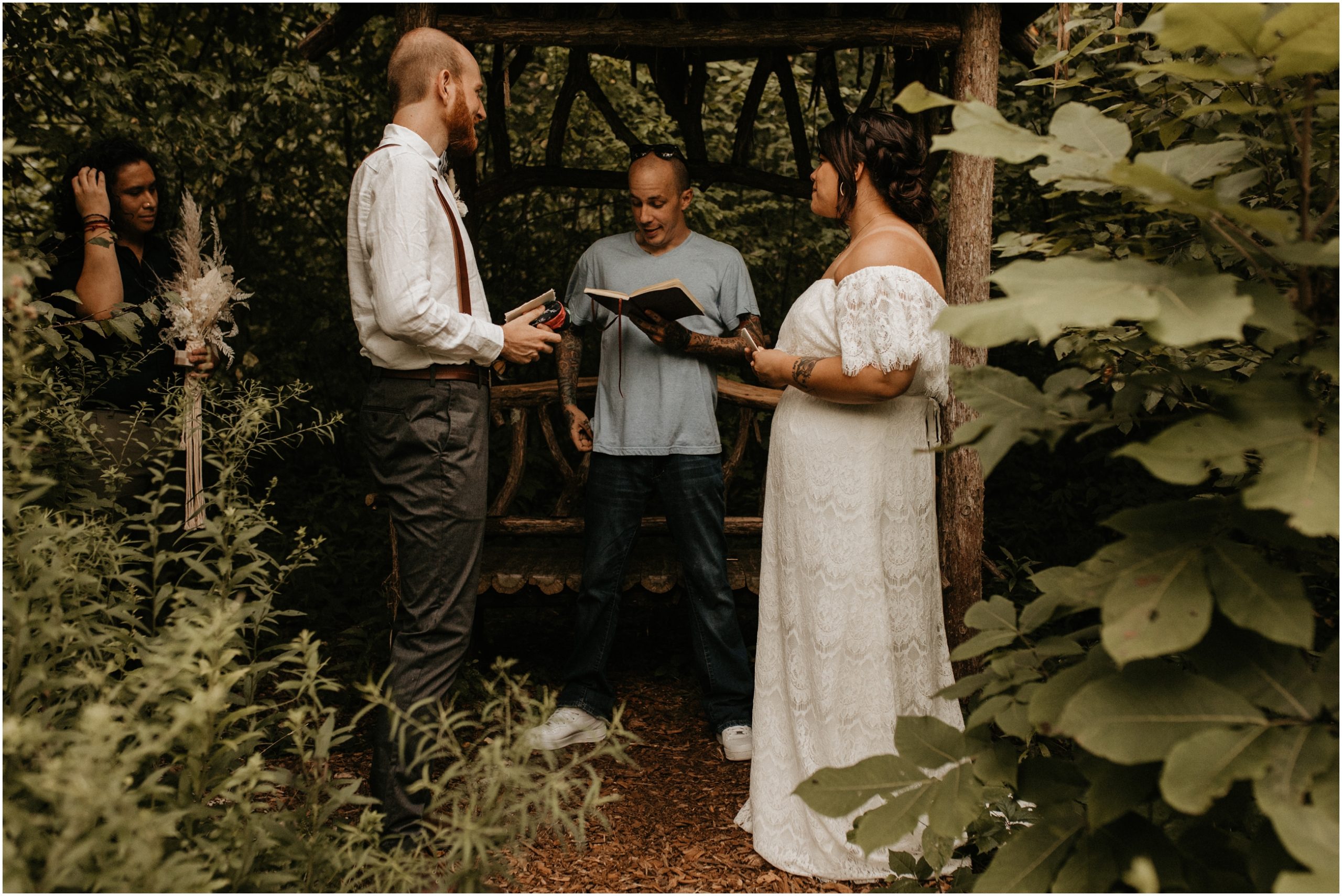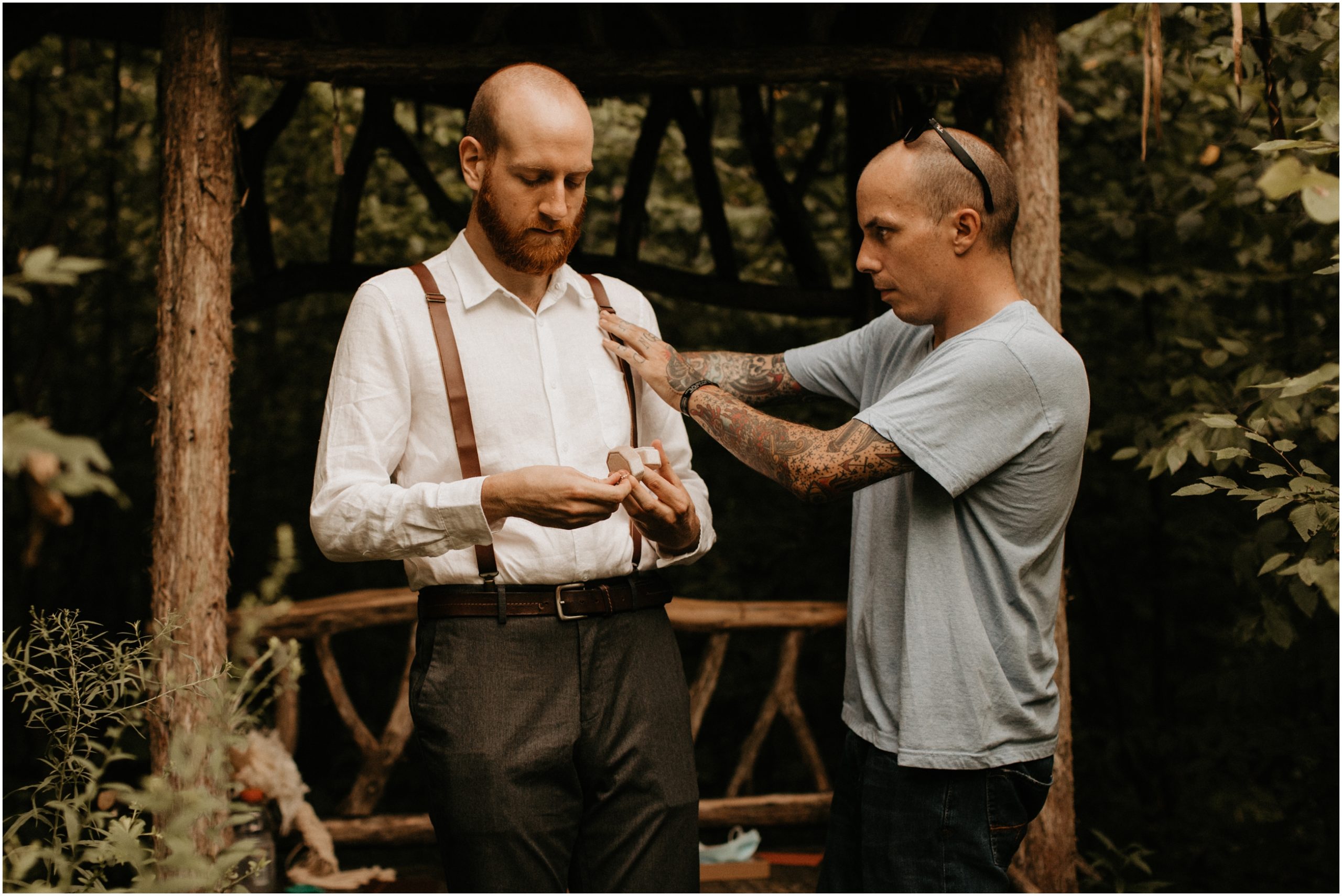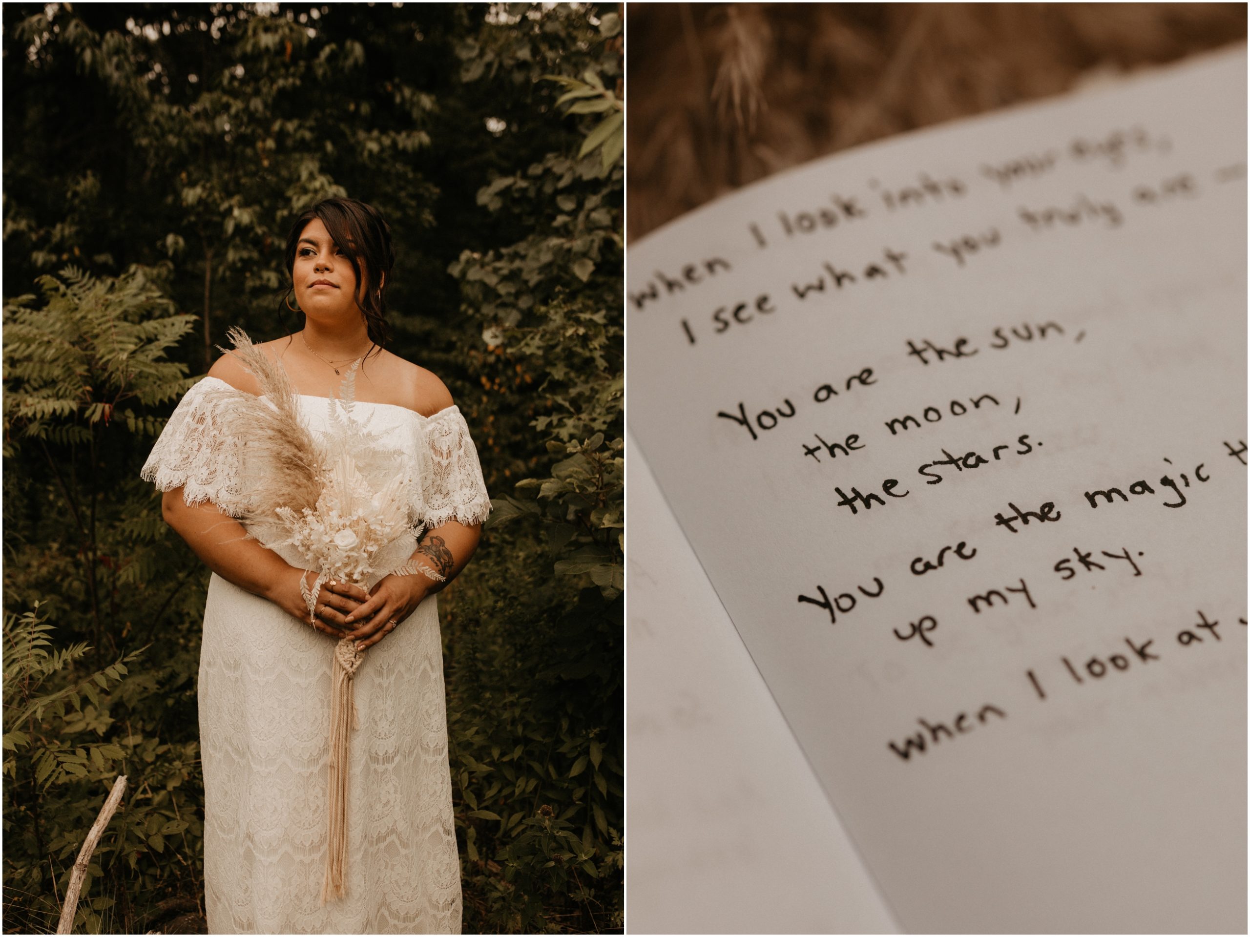 They found this hidden whimsical elopement spot just a day or so before their big day, and it all worked out so perfectly! It was totally secluded and absolutely stunning. I loved how engulfed in nature we felt, as these two are vegans like me, and I know nature means a lot to them! They’re up for any hiking adventure, like their waterfall engagement session in another part of this same reservation! Ahhh, this elopement was relaxed, romantic, and so totally THEM from their celestial details to their moody portraits to their vegan brownies and Saki to celebrate! Such a perfect day!!
