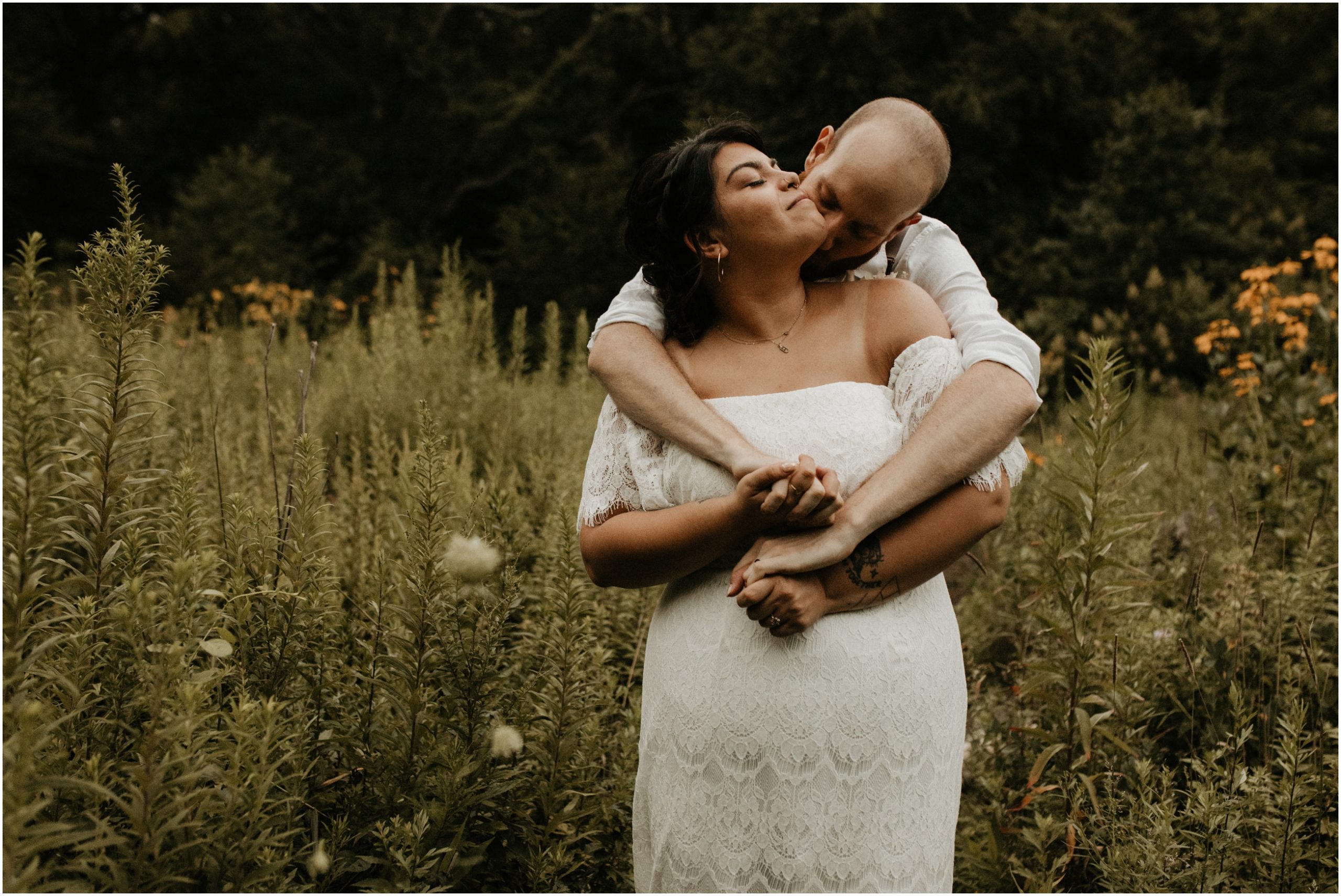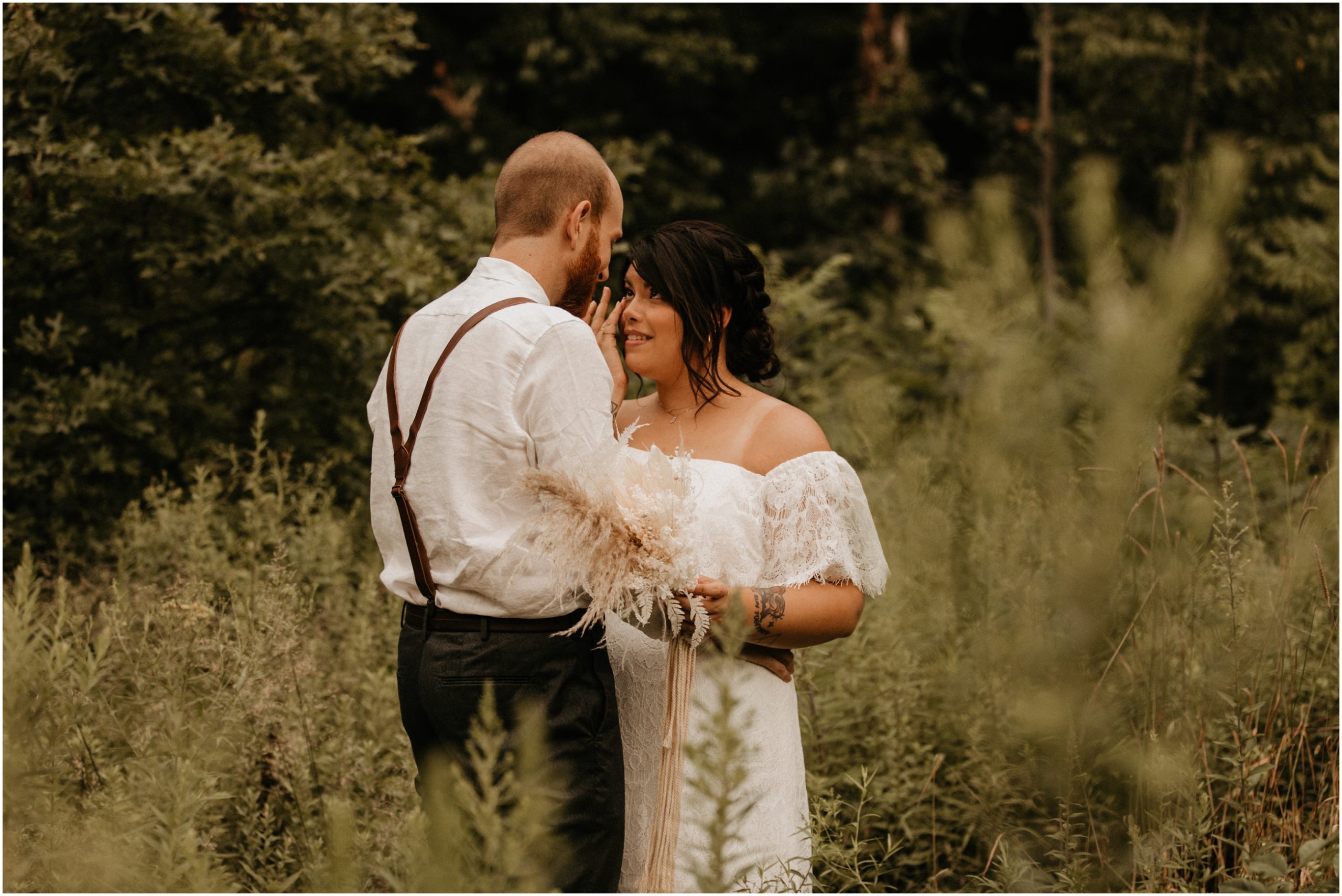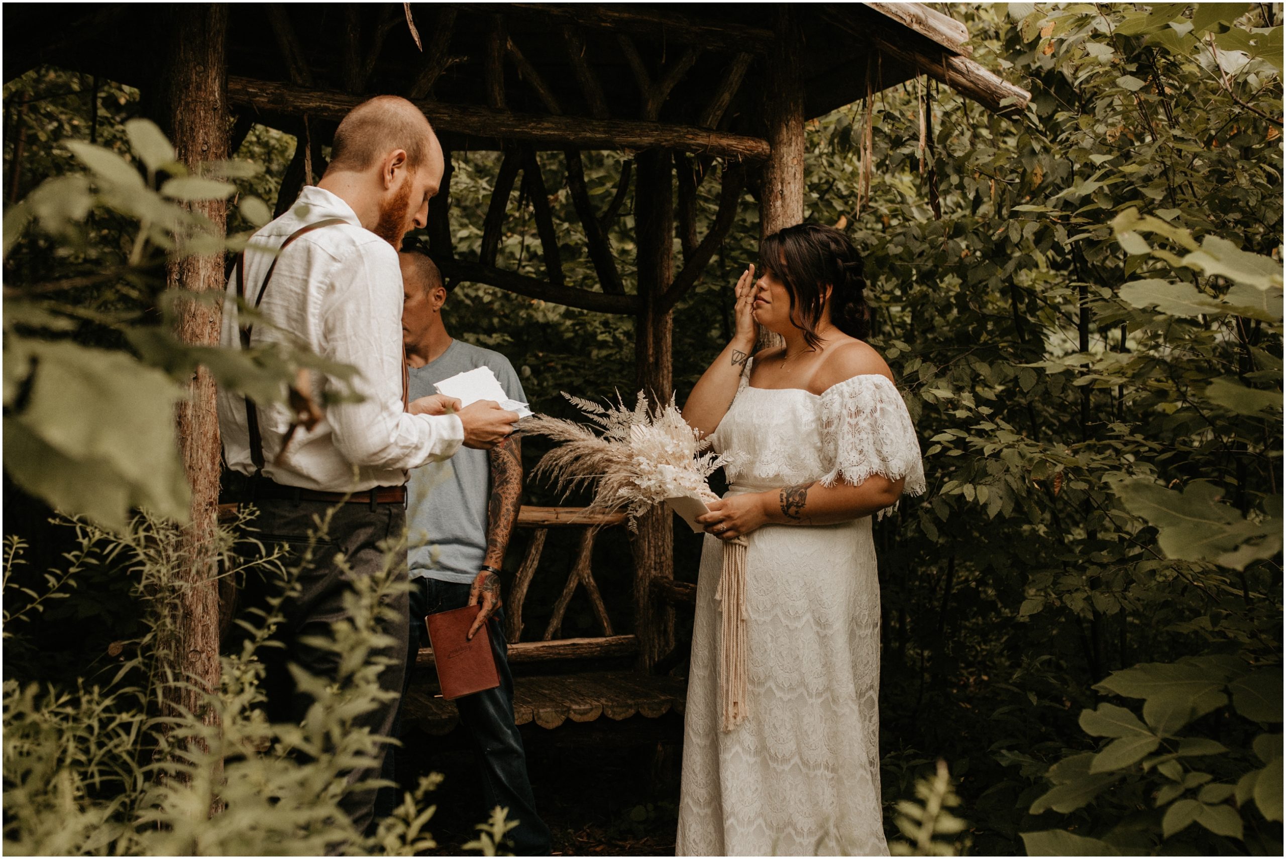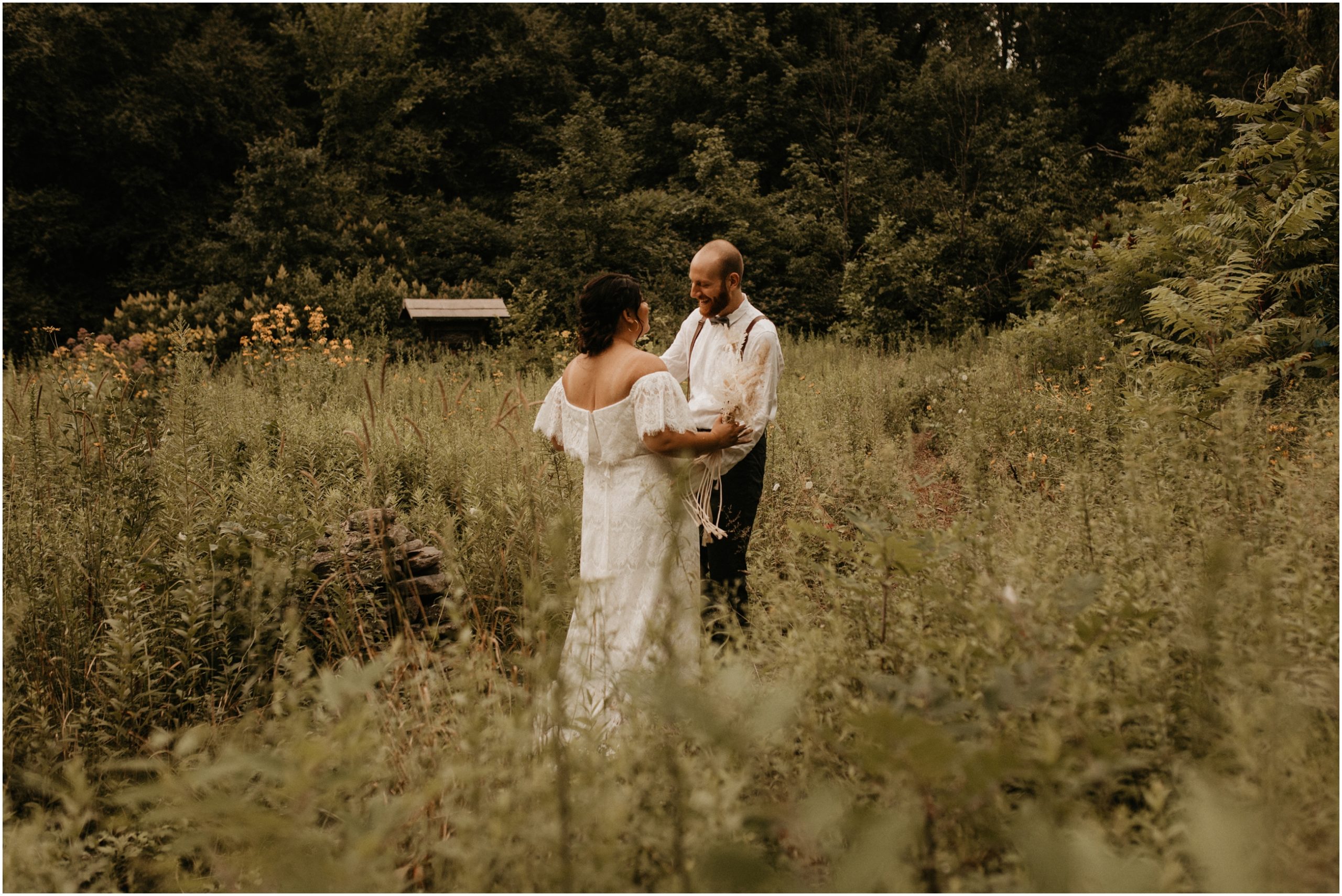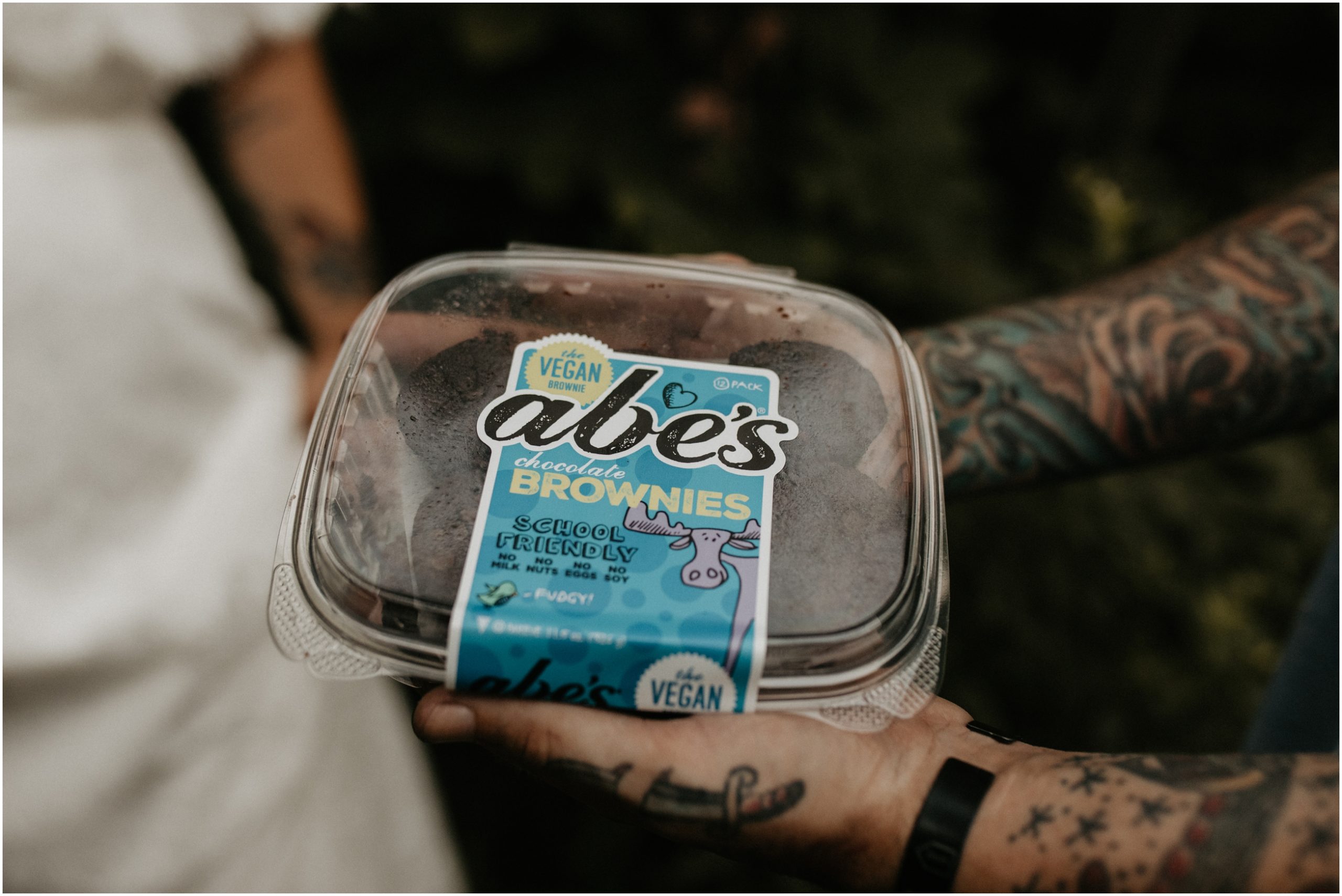 They found this hidden whimsical elopement spot just a day or so before their big day, and it all worked out so perfectly! It was totally secluded and absolutely stunning. I loved how engulfed in nature we felt, as these two are vegans like me, and I know nature means a lot to them! They’re up for any hiking adventure, like their waterfall engagement session in another part of this same reservation! Ahhh, this elopement was relaxed, romantic, and so totally THEM from their celestial details to their moody portraits to their vegan brownies and Saki to celebrate! Such a perfect day!!