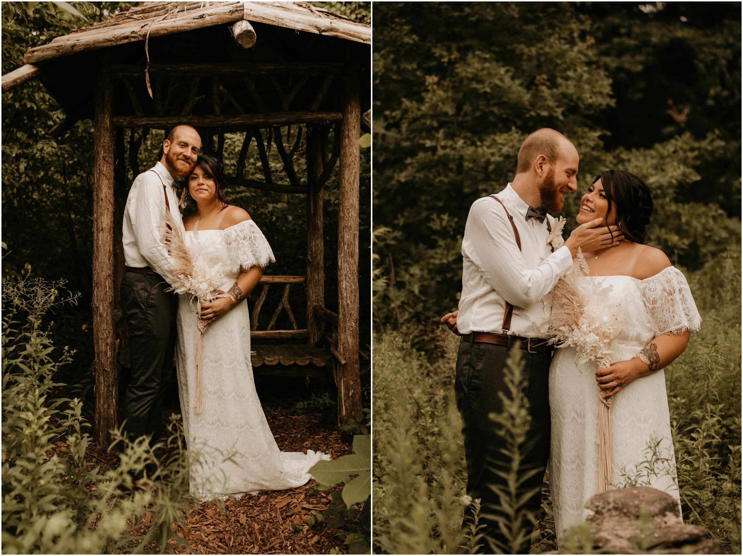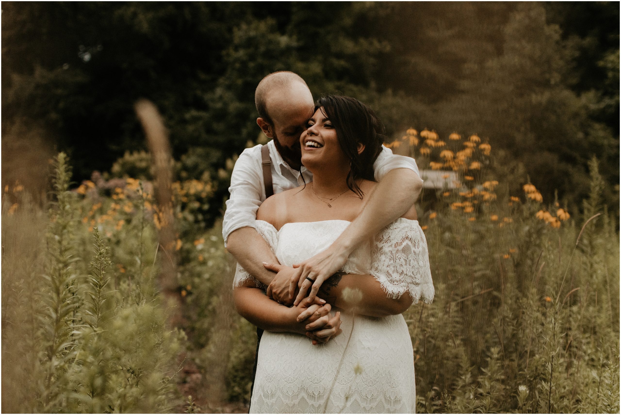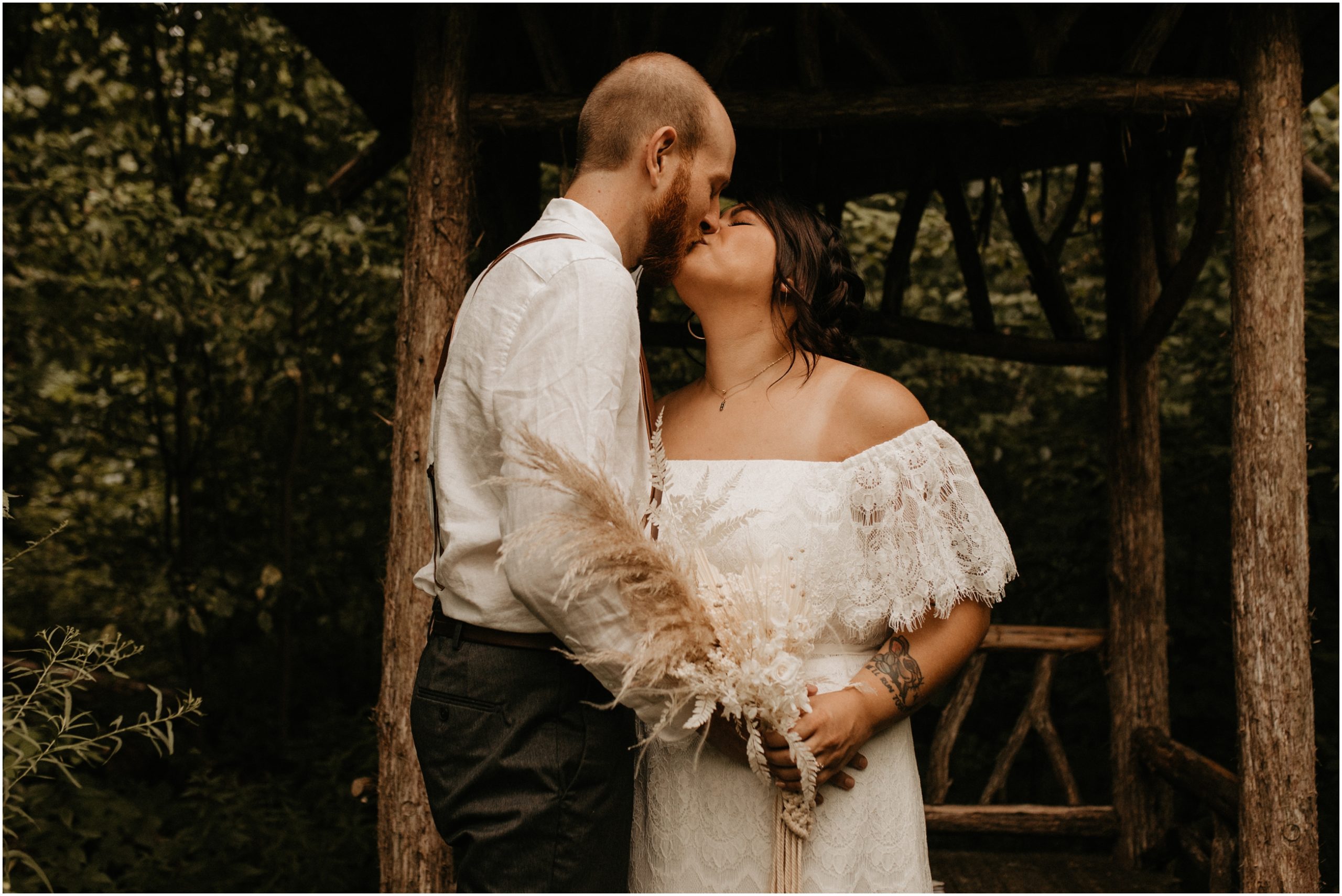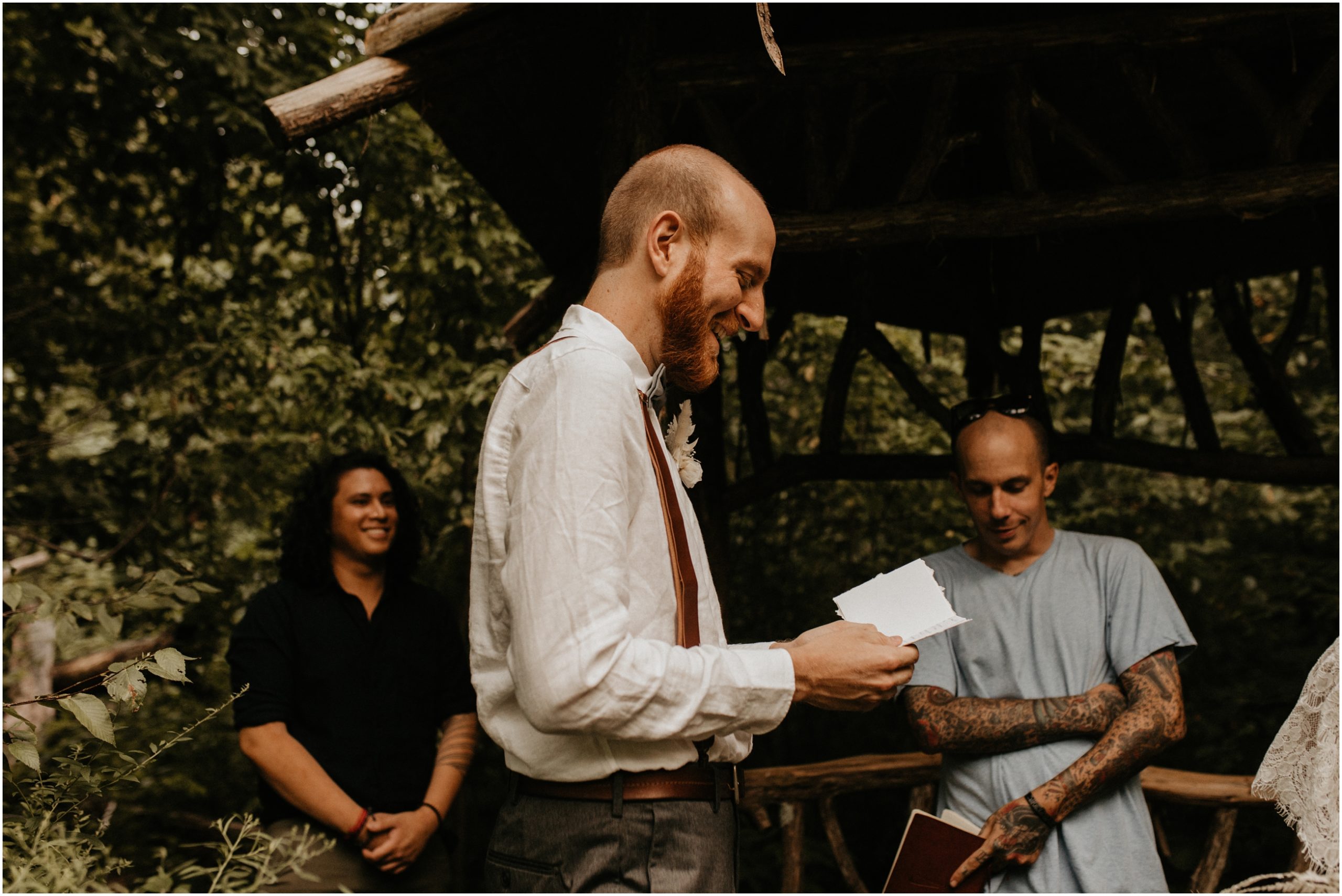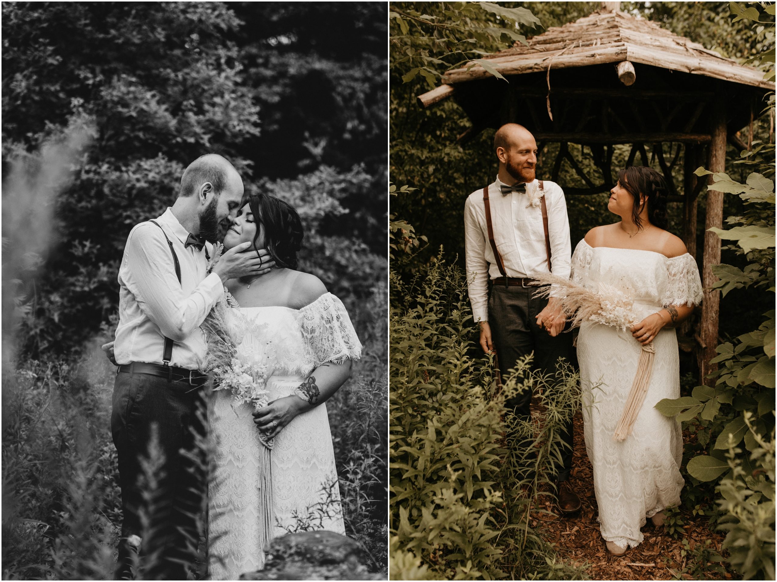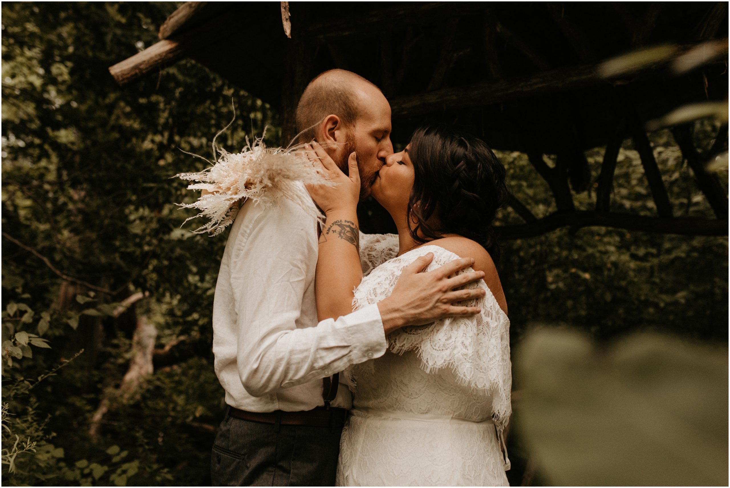 They found this hidden whimsical elopement spot just a day or so before their big day, and it all worked out so perfectly! It was totally secluded and absolutely stunning. I loved how engulfed in nature we felt, as these two are vegans like me, and I know nature means a lot to them! They’re up for any hiking adventure, like their waterfall engagement session in another part of this same reservation! Ahhh, this elopement was relaxed, romantic, and so totally THEM from their celestial details to their moody portraits to their vegan brownies and Saki to celebrate! Such a perfect day!!