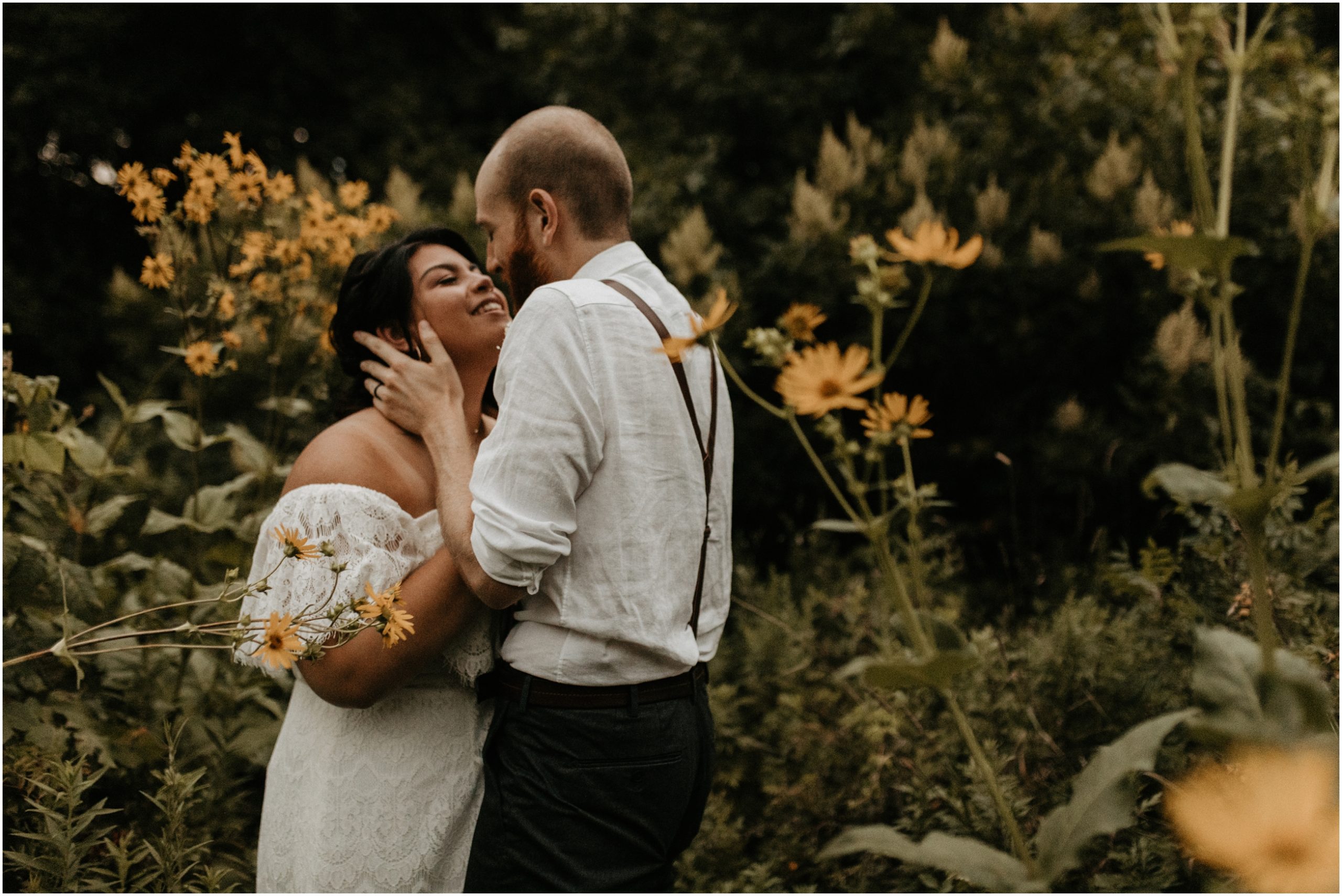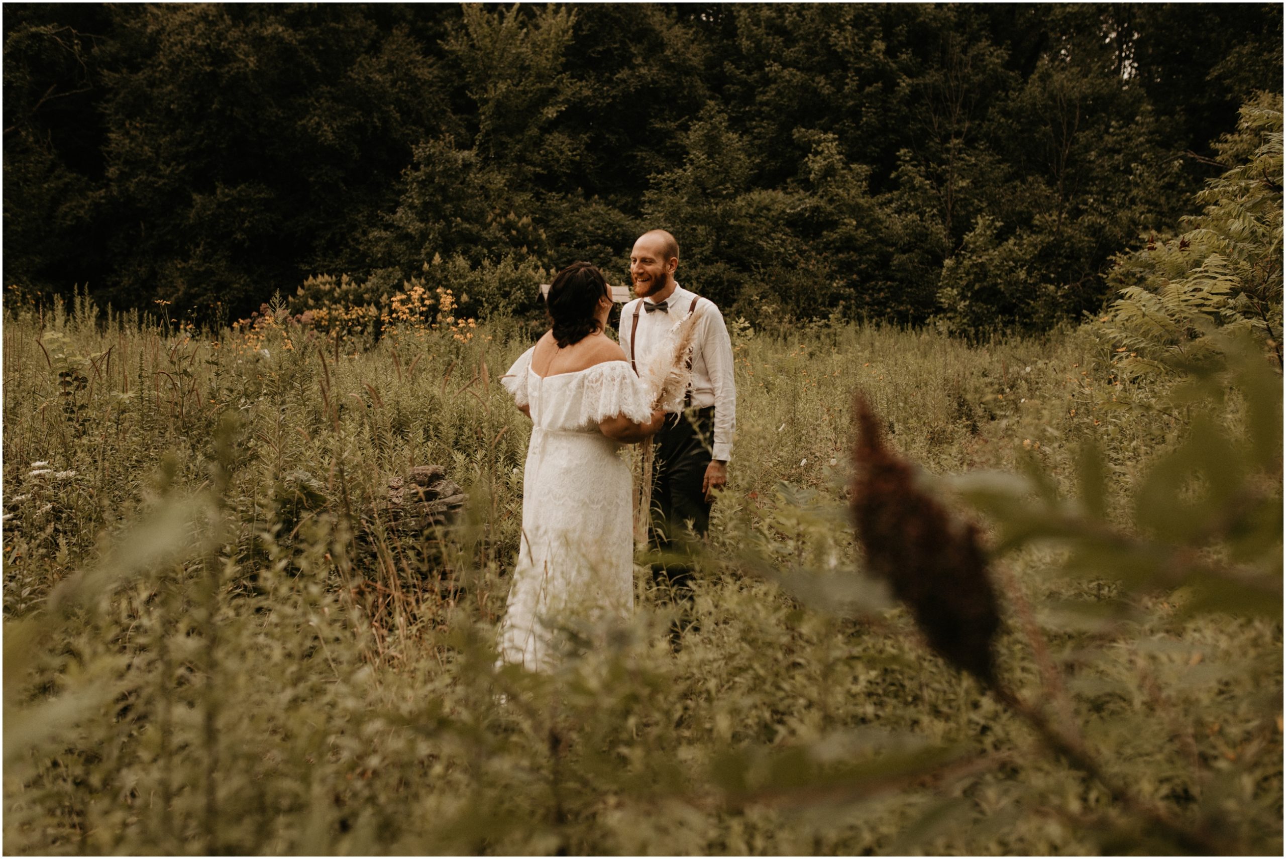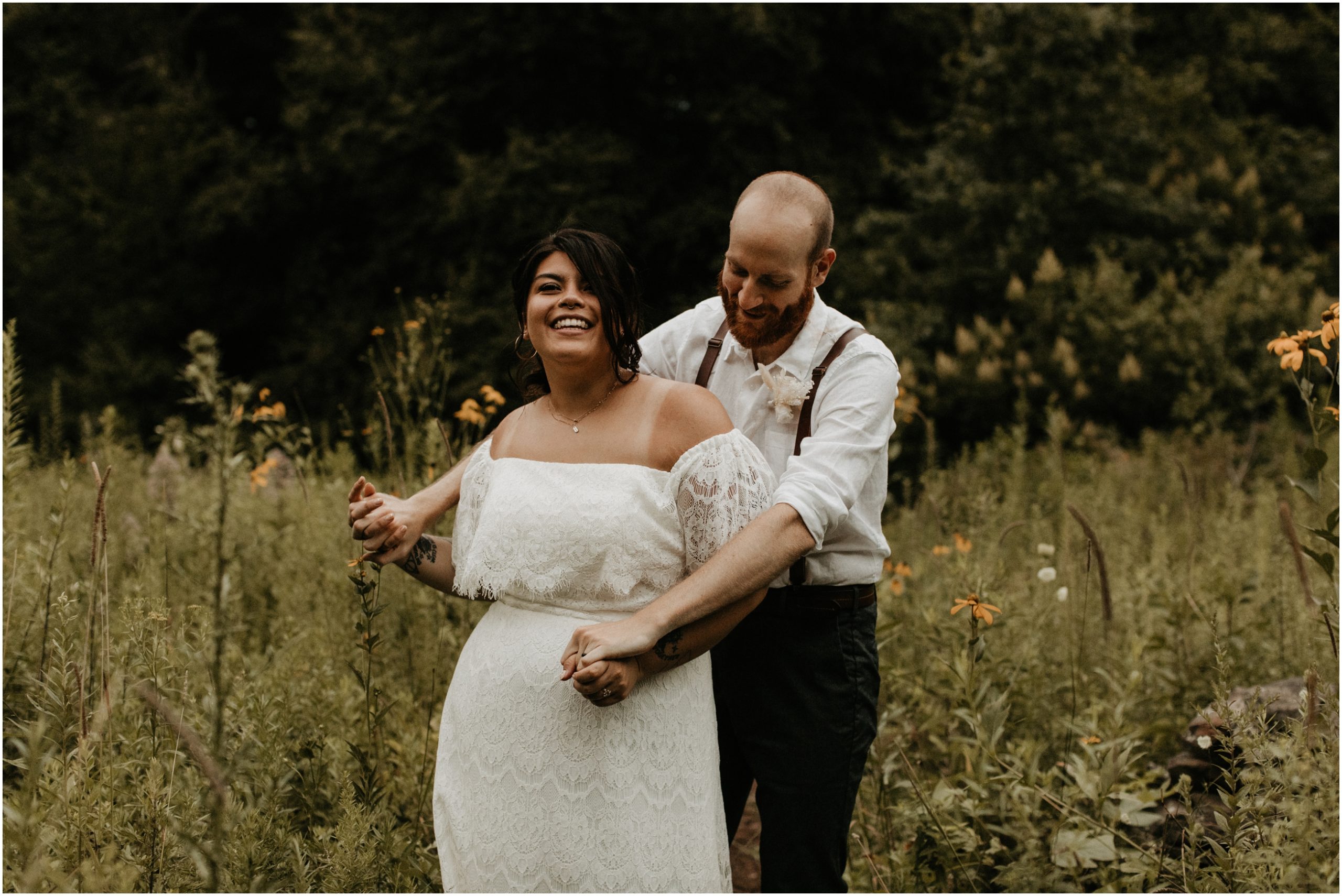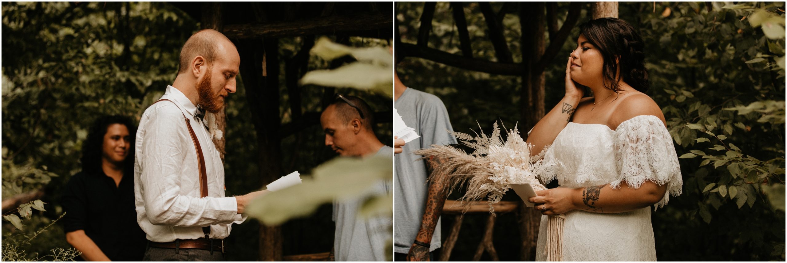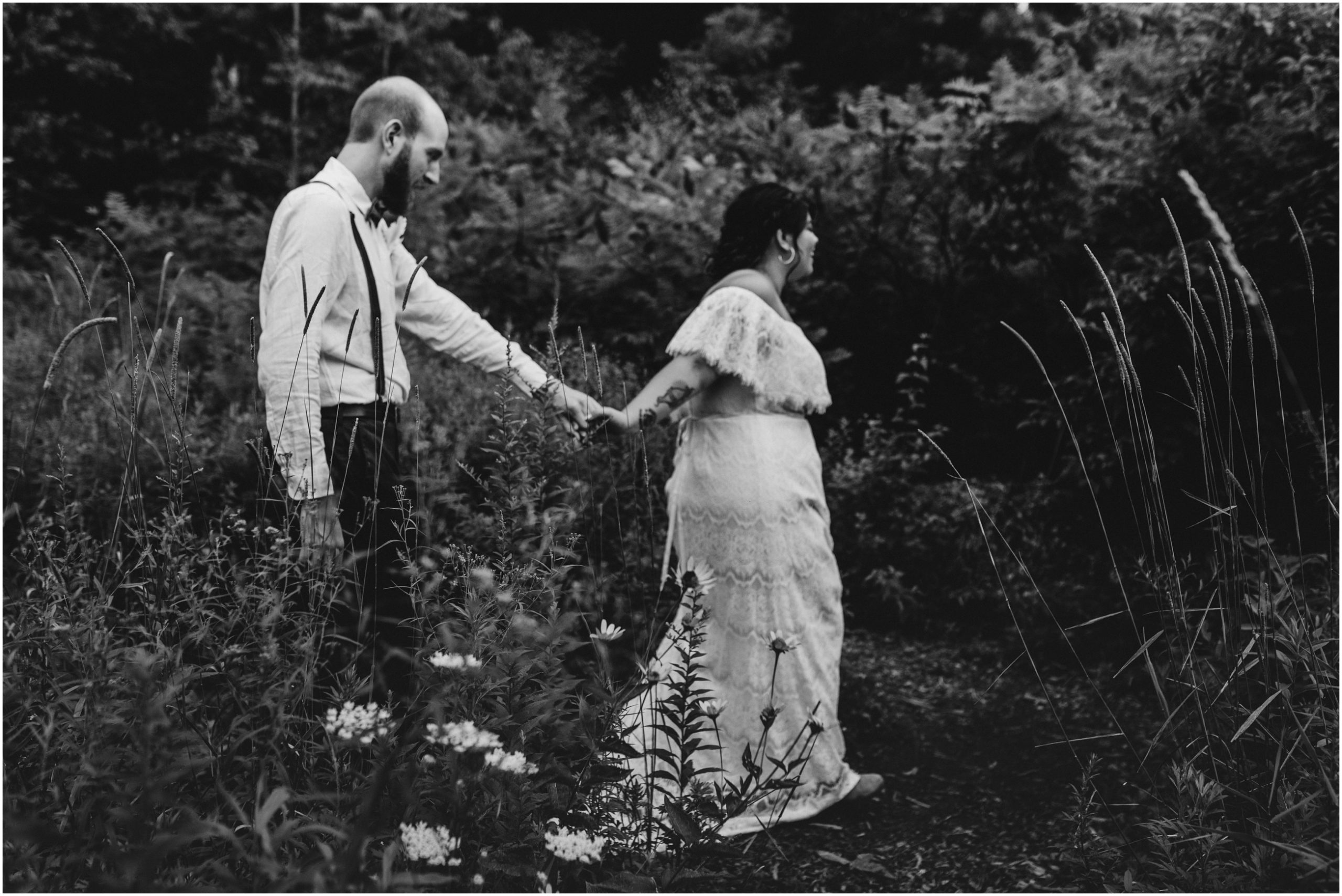 They found this hidden whimsical elopement spot just a day or so before their big day, and it all worked out so perfectly! It was totally secluded and absolutely stunning. I loved how engulfed in nature we felt, as these two are vegans like me, and I know nature means a lot to them! They’re up for any hiking adventure, like their waterfall engagement session in another part of this same reservation! Ahhh, this elopement was relaxed, romantic, and so totally THEM from their celestial details to their moody portraits to their vegan brownies and Saki to celebrate! Such a perfect day!!