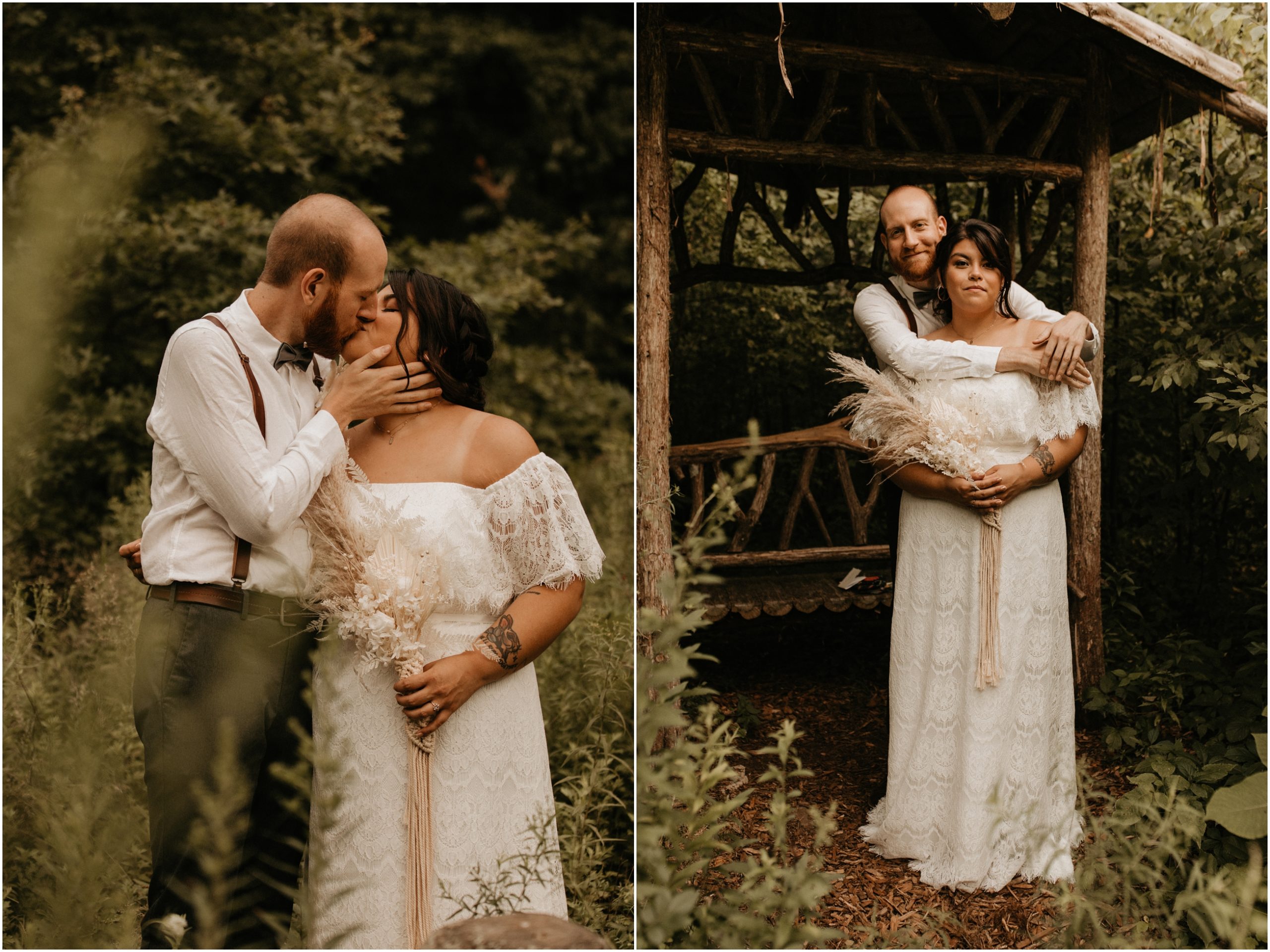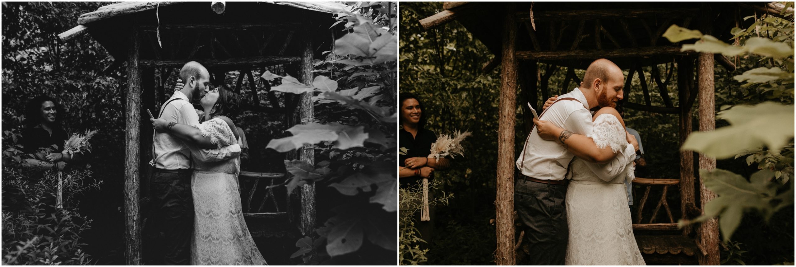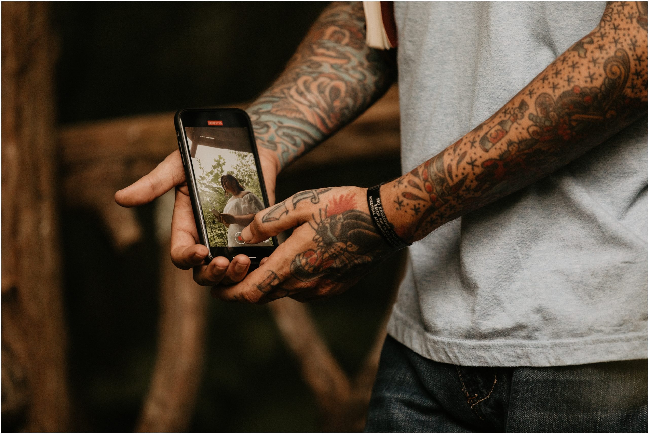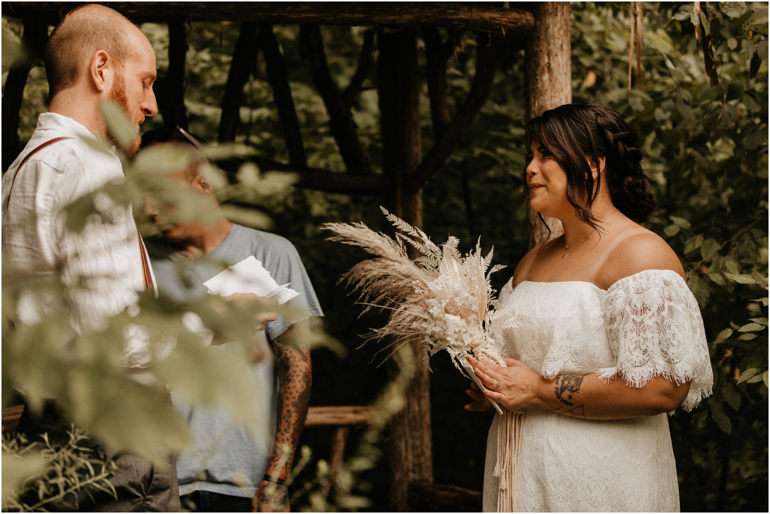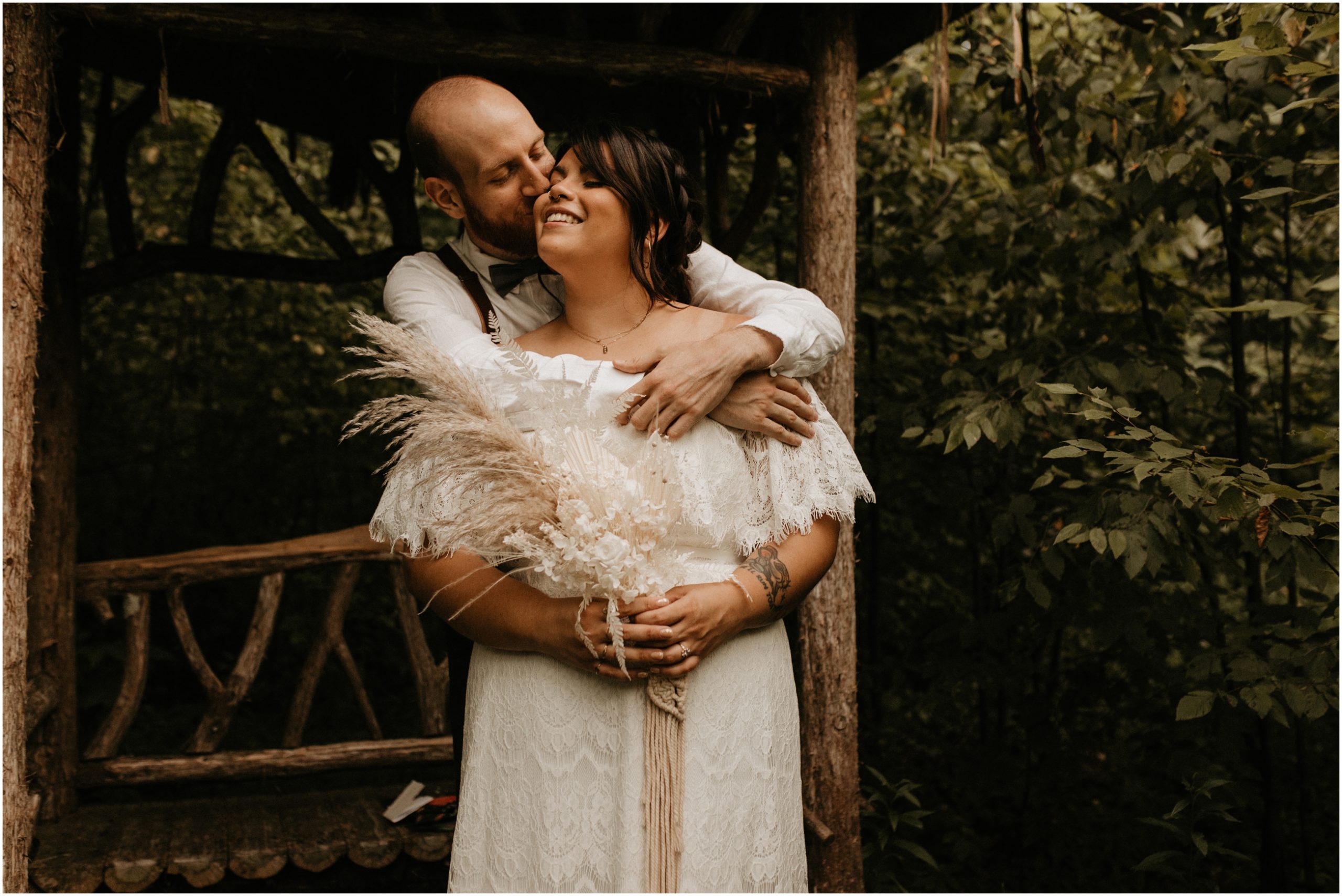 They found this hidden whimsical elopement spot just a day or so before their big day, and it all worked out so perfectly! It was totally secluded and absolutely stunning. I loved how engulfed in nature we felt, as these two are vegans like me, and I know nature means a lot to them! They’re up for any hiking adventure, like their waterfall engagement session in another part of this same reservation! Ahhh, this elopement was relaxed, romantic, and so totally THEM from their celestial details to their moody portraits to their vegan brownies and Saki to celebrate! Such a perfect day!!