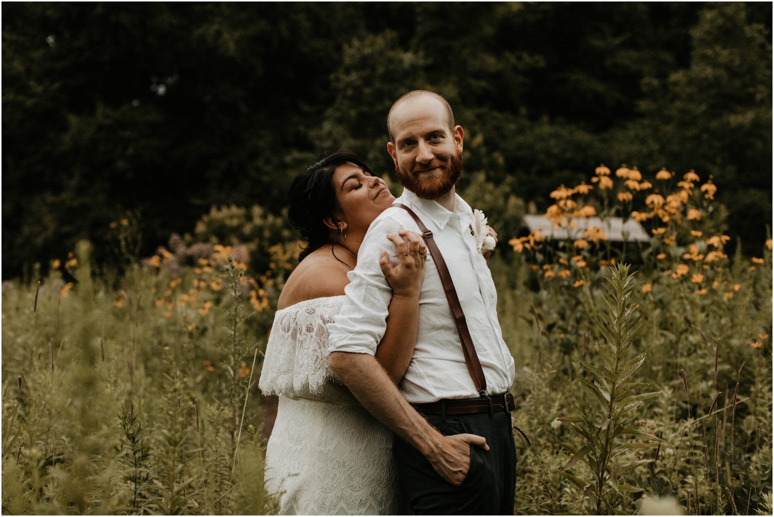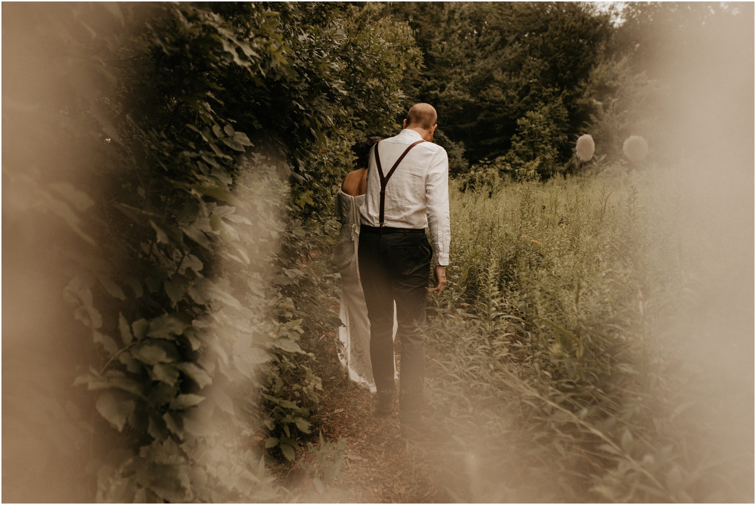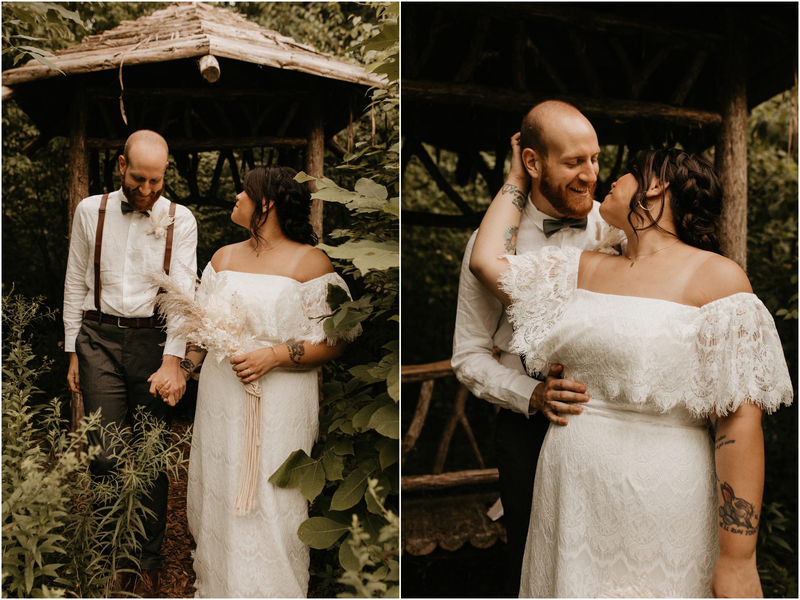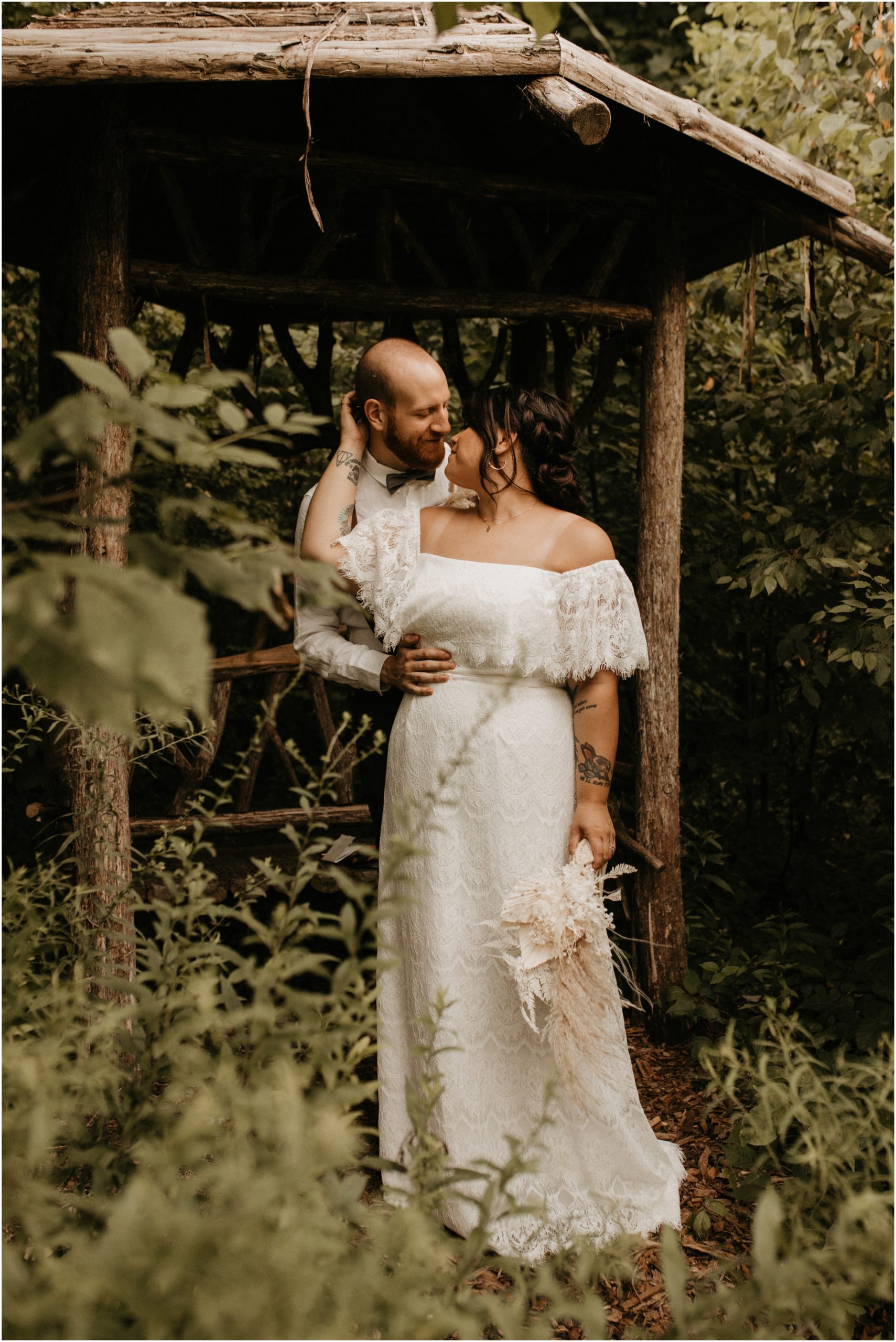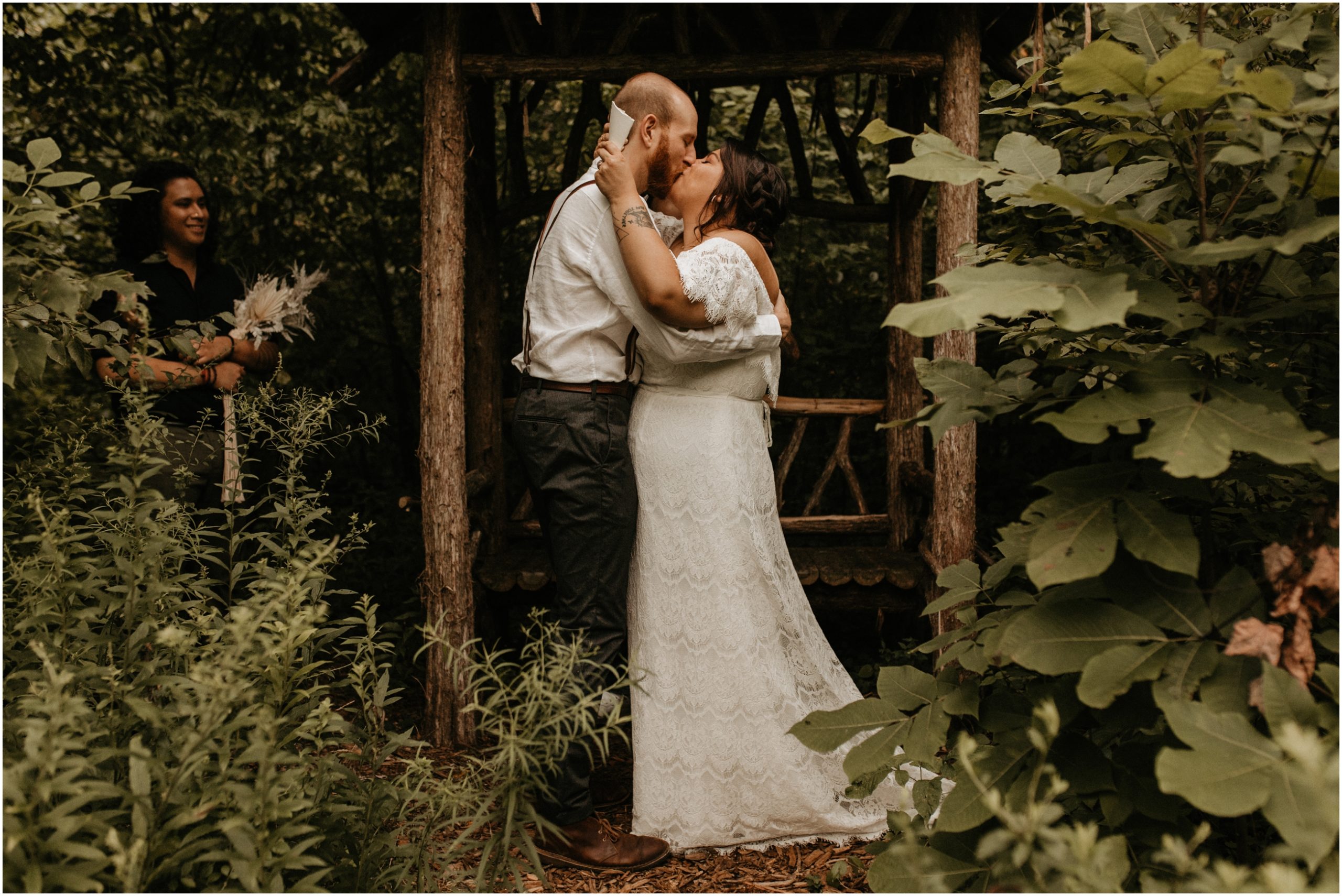 They found this hidden whimsical elopement spot just a day or so before their big day, and it all worked out so perfectly! It was totally secluded and absolutely stunning. I loved how engulfed in nature we felt, as these two are vegans like me, and I know nature means a lot to them! They’re up for any hiking adventure, like their waterfall engagement session in another part of this same reservation! Ahhh, this elopement was relaxed, romantic, and so totally THEM from their celestial details to their moody portraits to their vegan brownies and Saki to celebrate! Such a perfect day!!