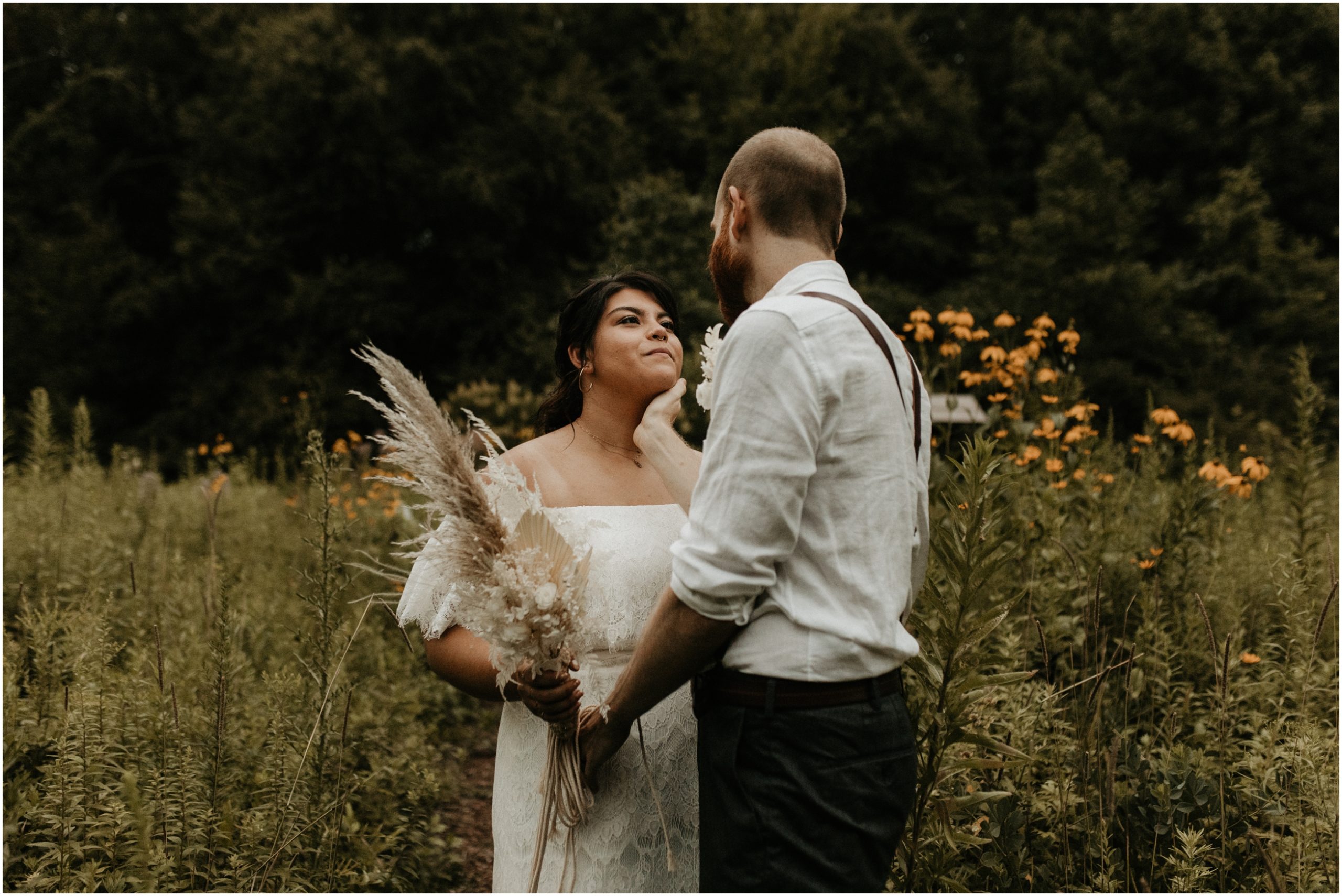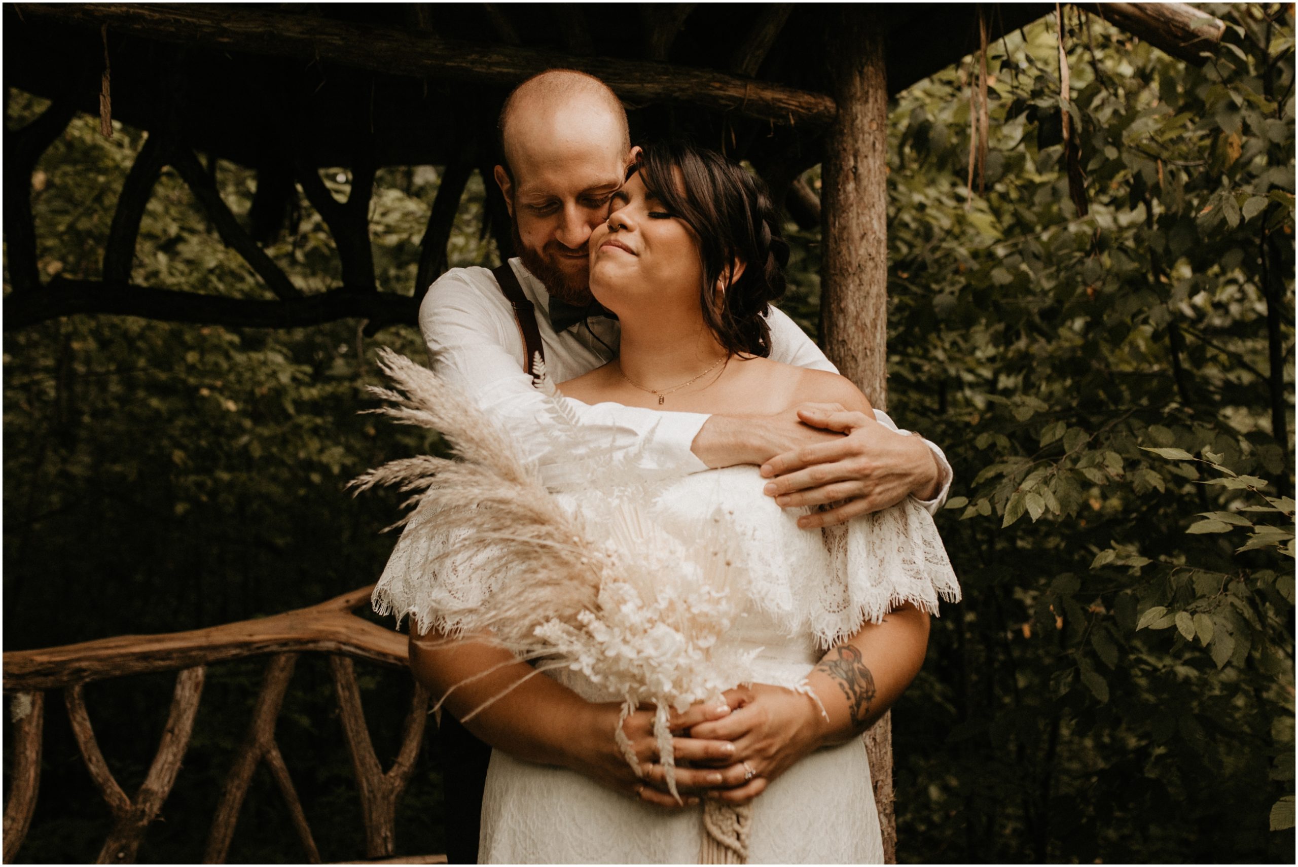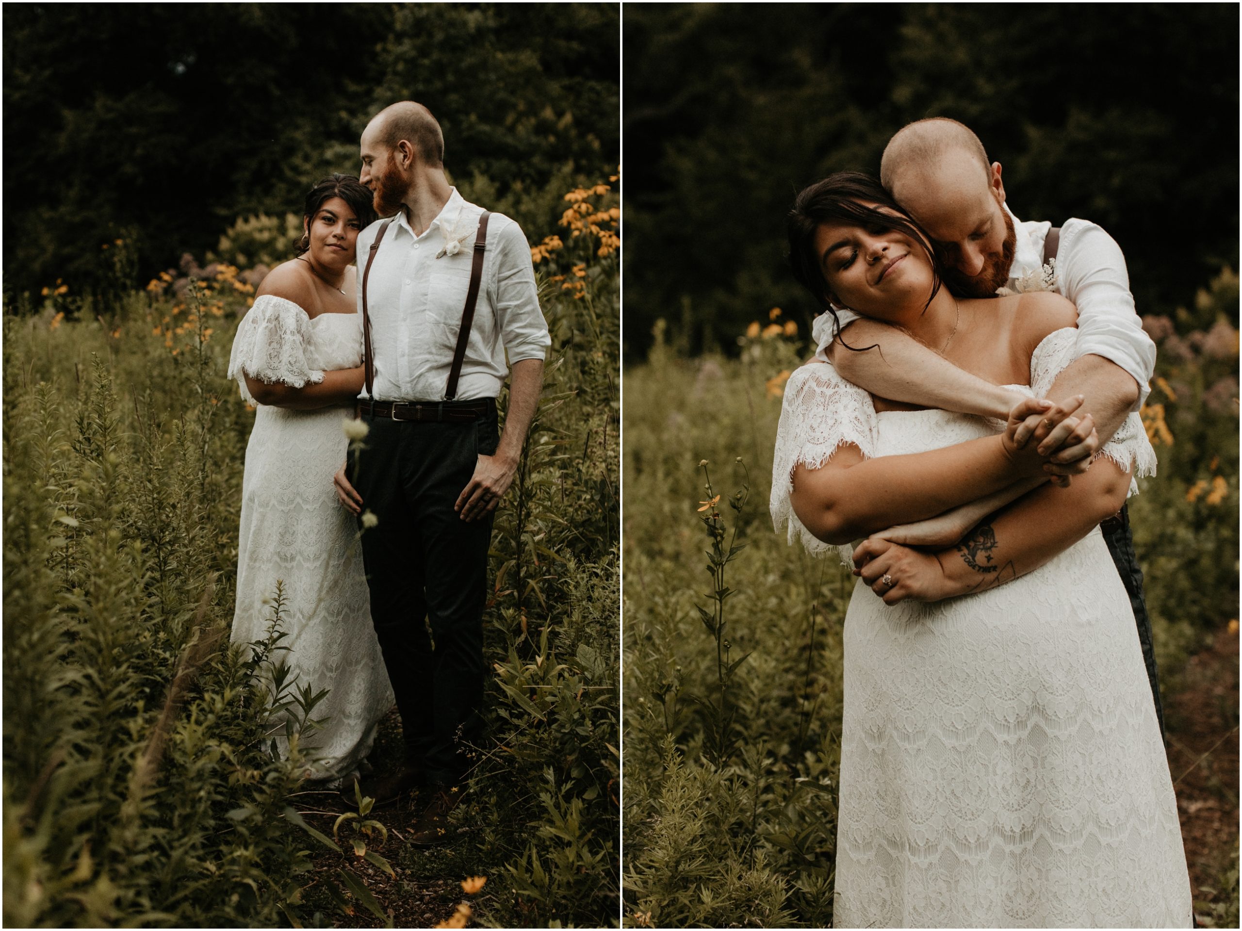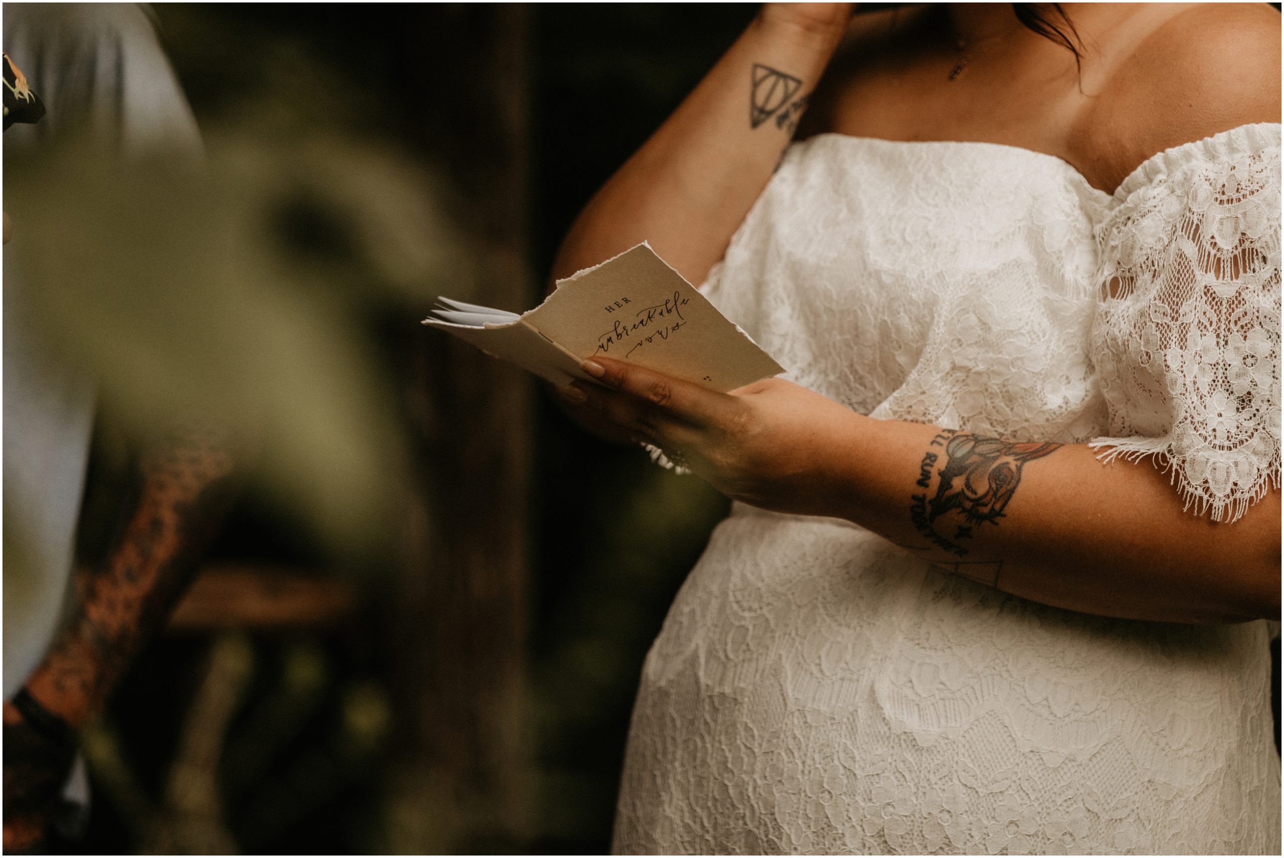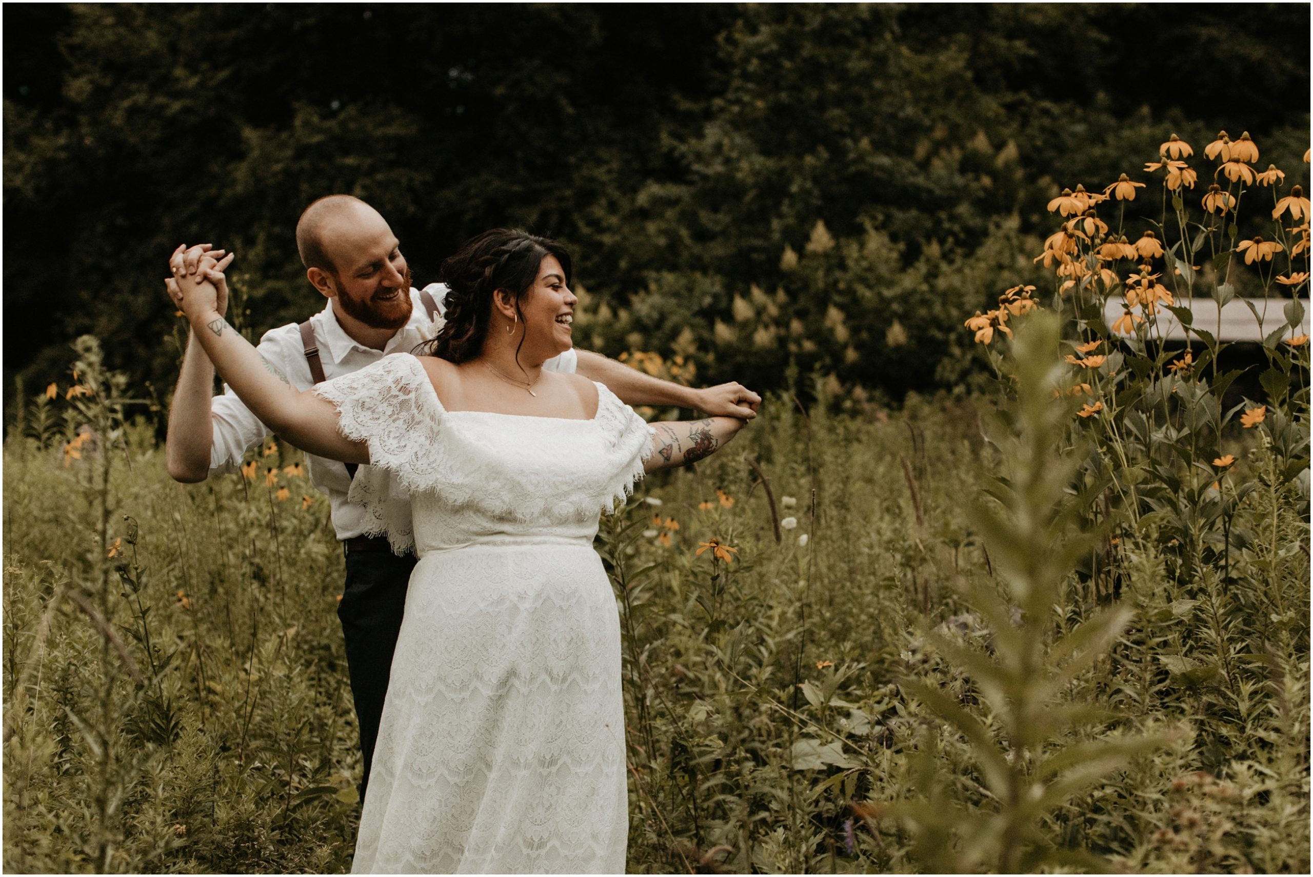 They found this hidden whimsical elopement spot just a day or so before their big day, and it all worked out so perfectly! It was totally secluded and absolutely stunning. I loved how engulfed in nature we felt, as these two are vegans like me, and I know nature means a lot to them! They’re up for any hiking adventure, like their waterfall engagement session in another part of this same reservation! Ahhh, this elopement was relaxed, romantic, and so totally THEM from their celestial details to their moody portraits to their vegan brownies and Saki to celebrate! Such a perfect day!!