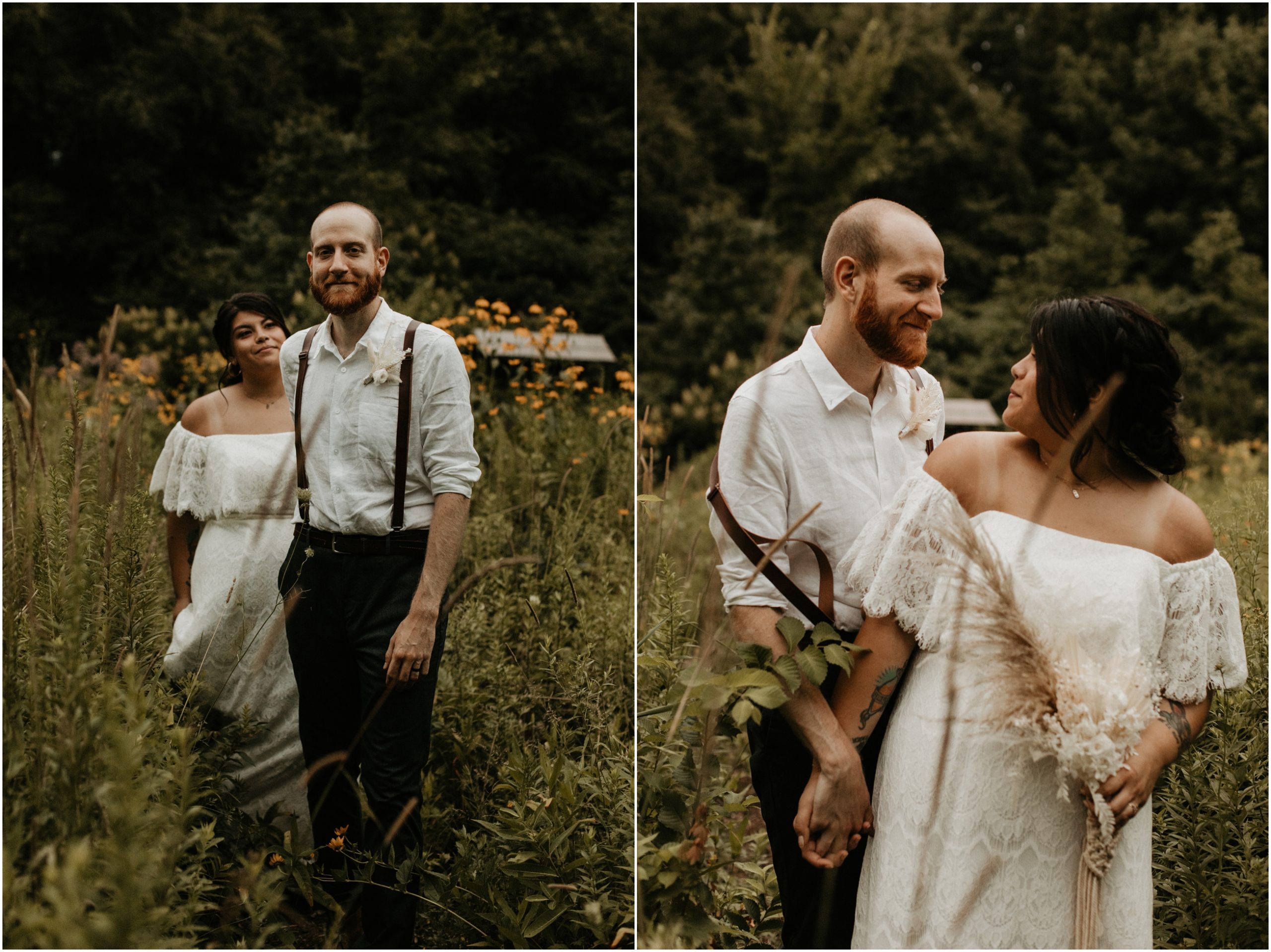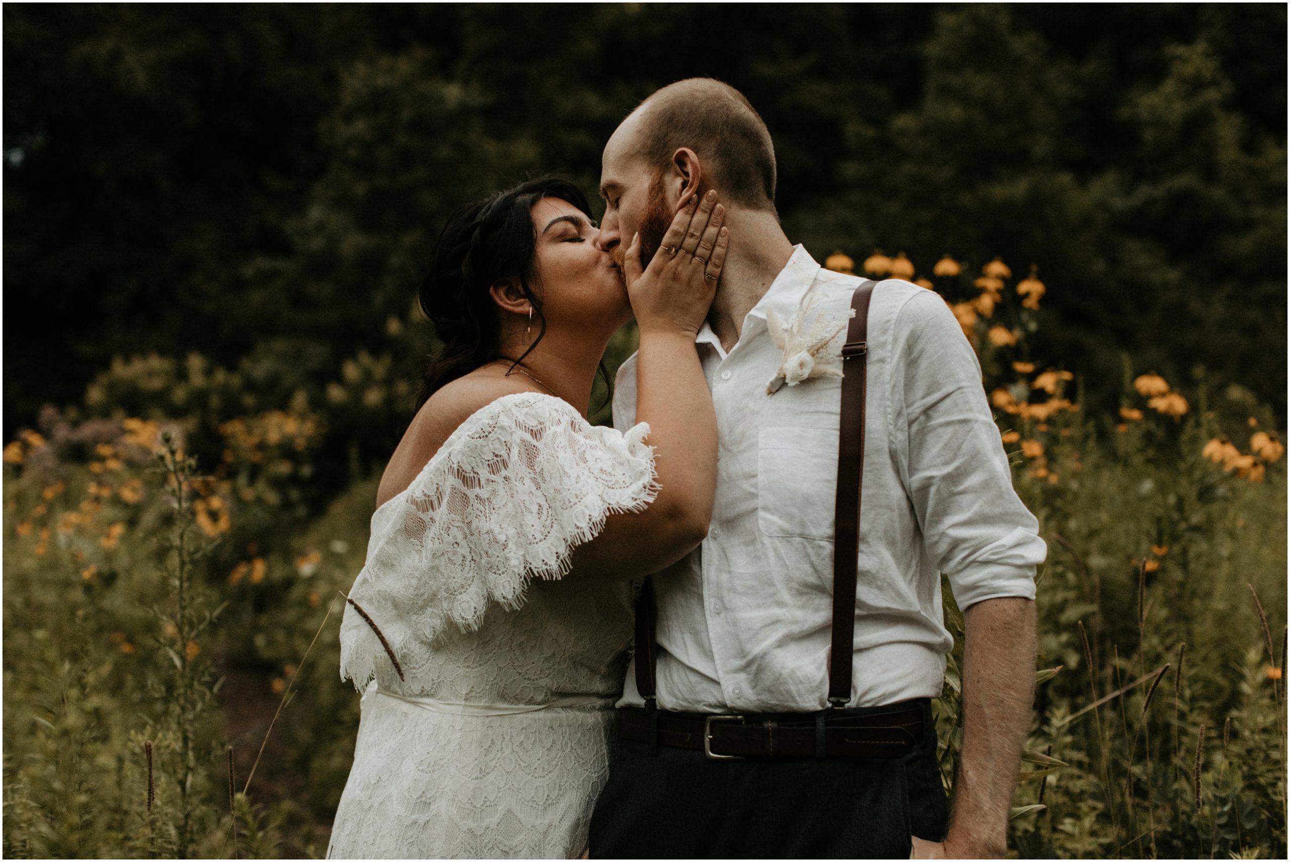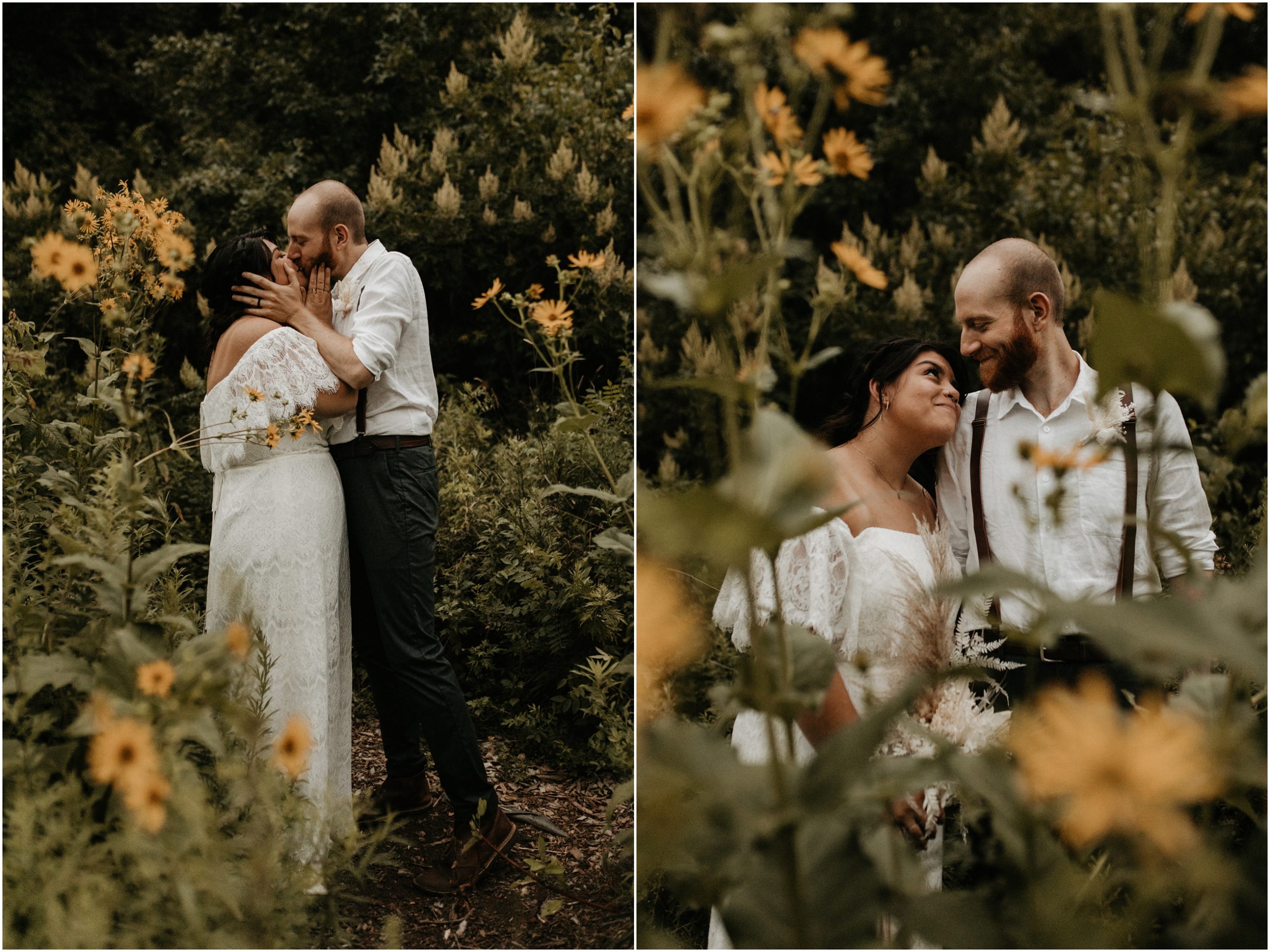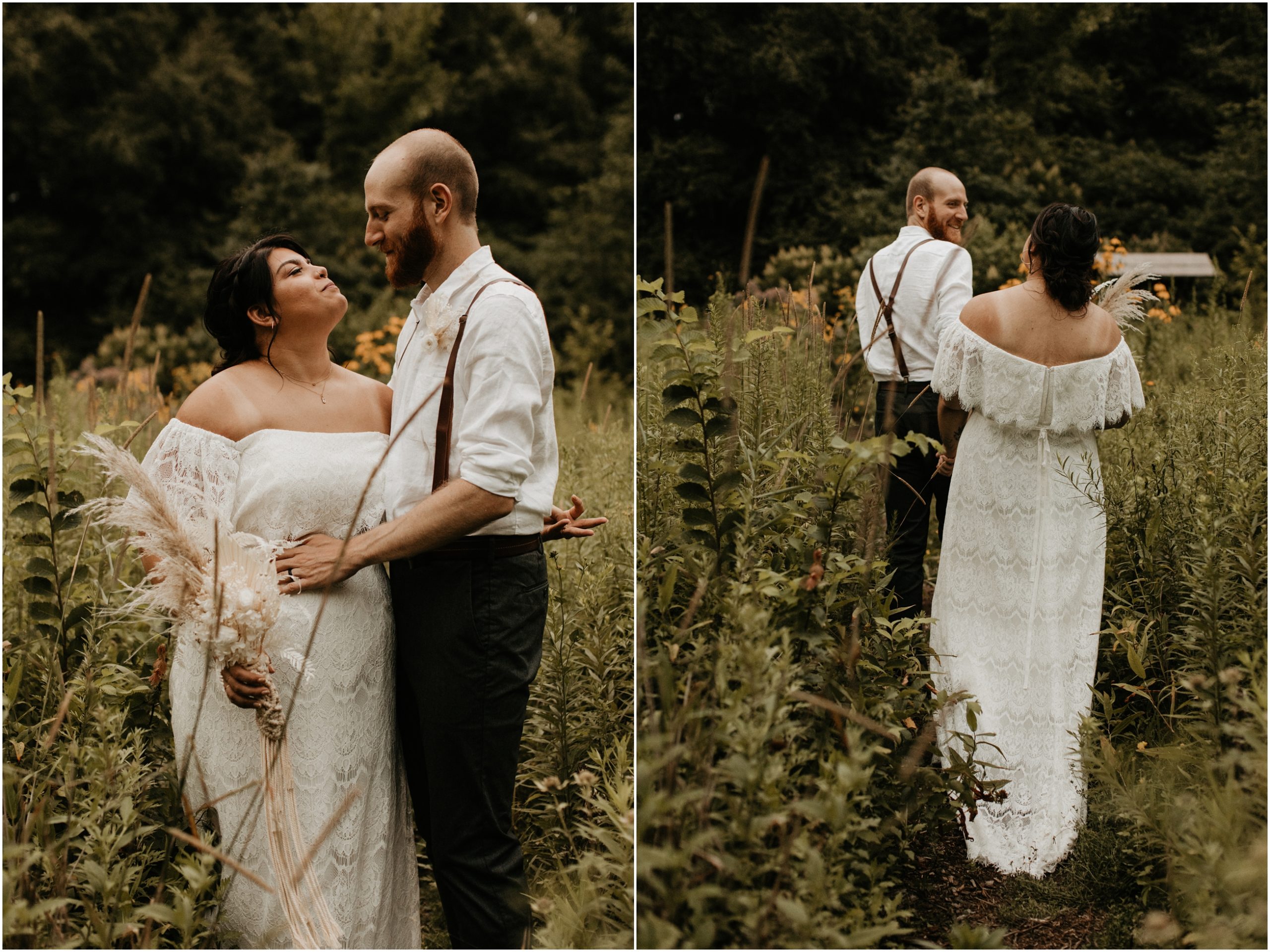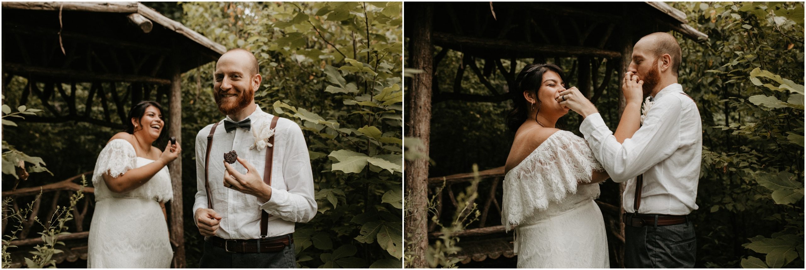They found this hidden whimsical elopement spot just a day or so before their big day, and it all worked out so perfectly! It was totally secluded and absolutely stunning. I loved how engulfed in nature we felt, as these two are vegans like me, and I know nature means a lot to them! They’re up for any hiking adventure, like their waterfall engagement session in another part of this same reservation! Ahhh, this elopement was relaxed, romantic, and so totally THEM from their celestial details to their moody portraits to their vegan brownies and Saki to celebrate! Such a perfect day!!