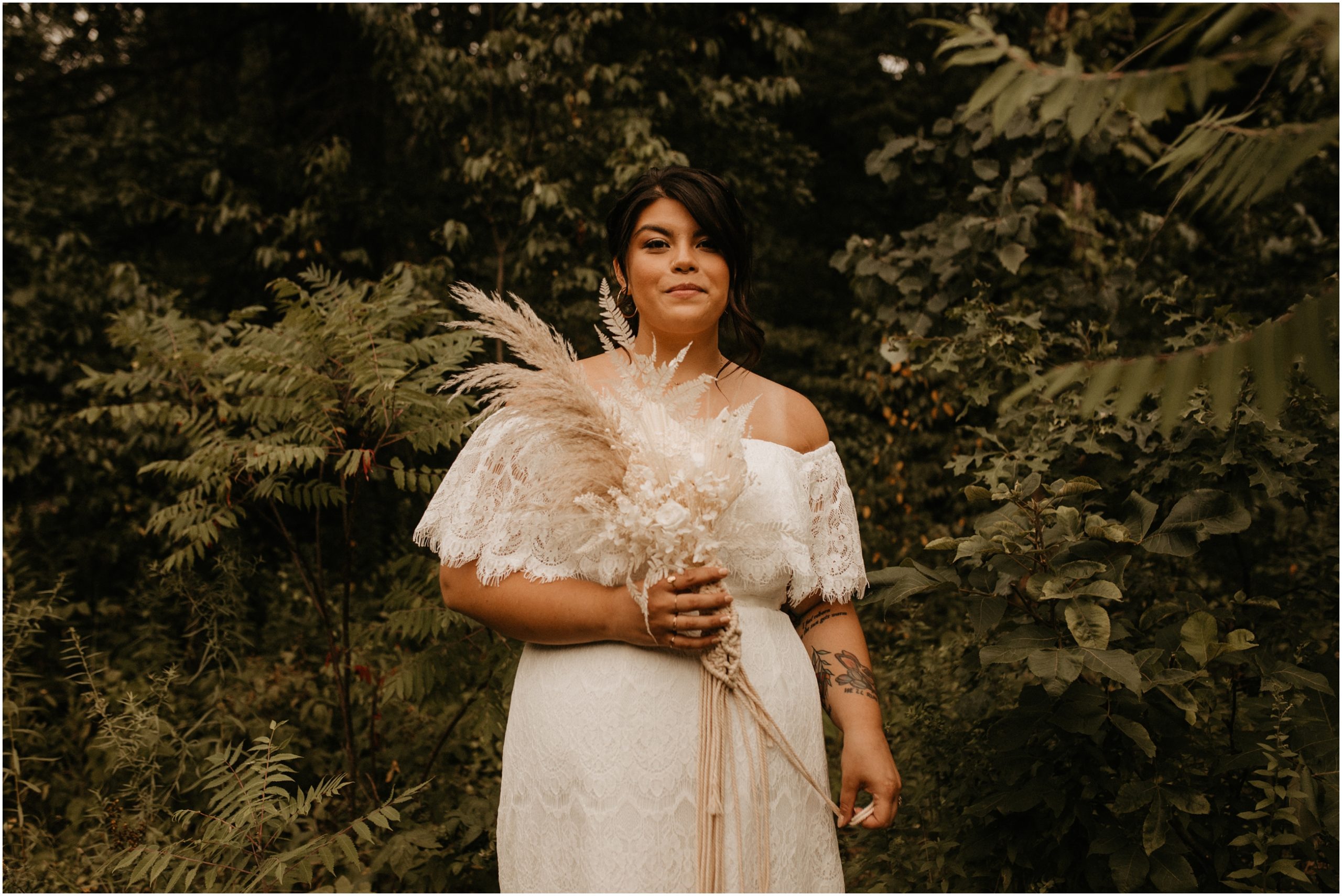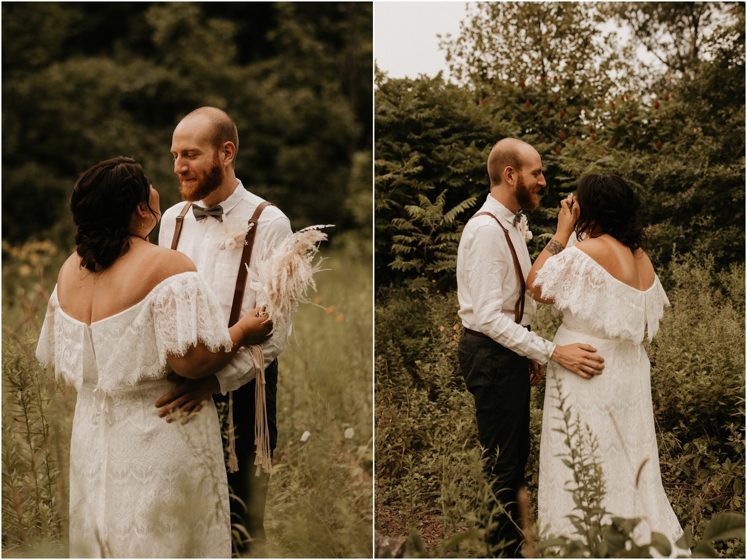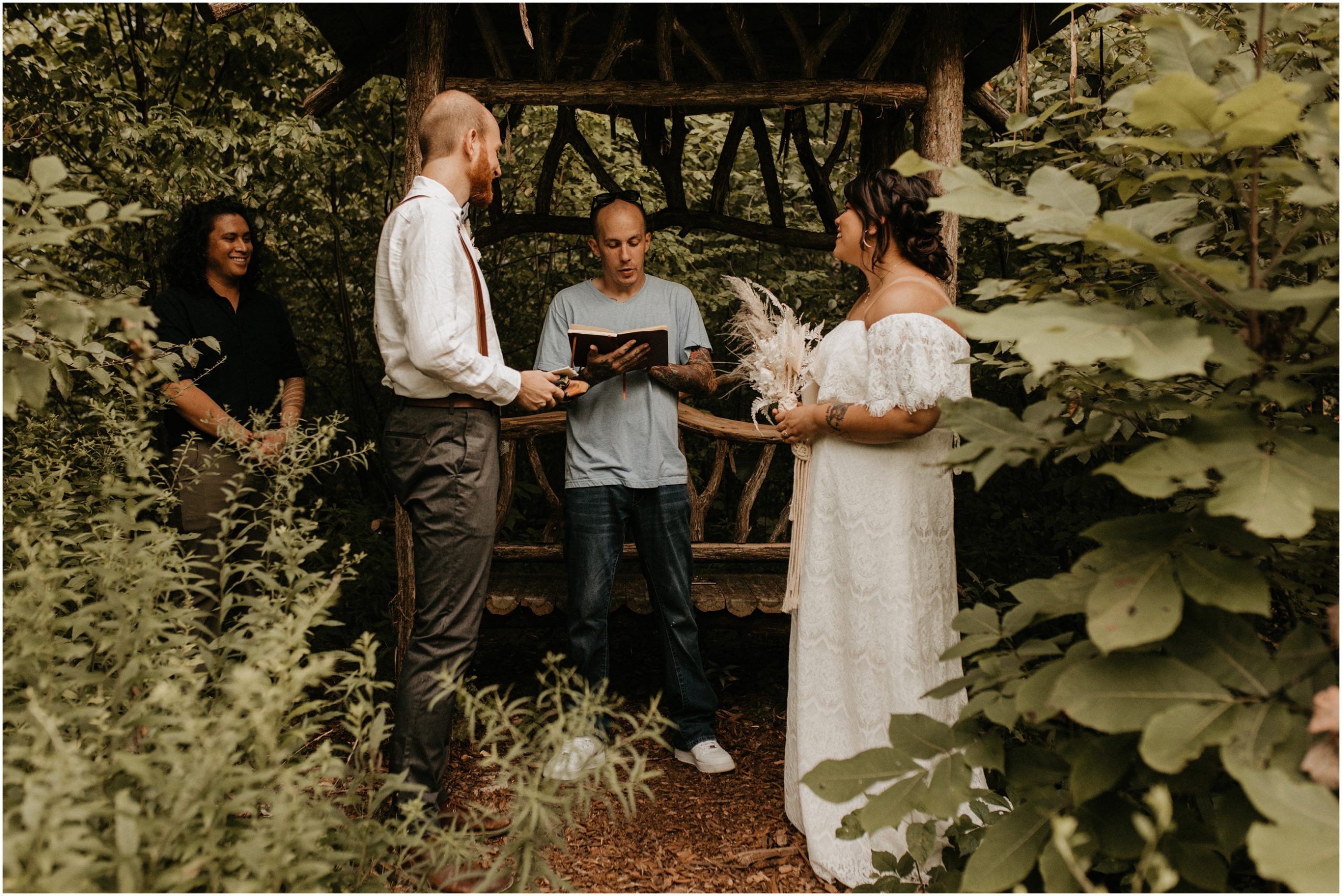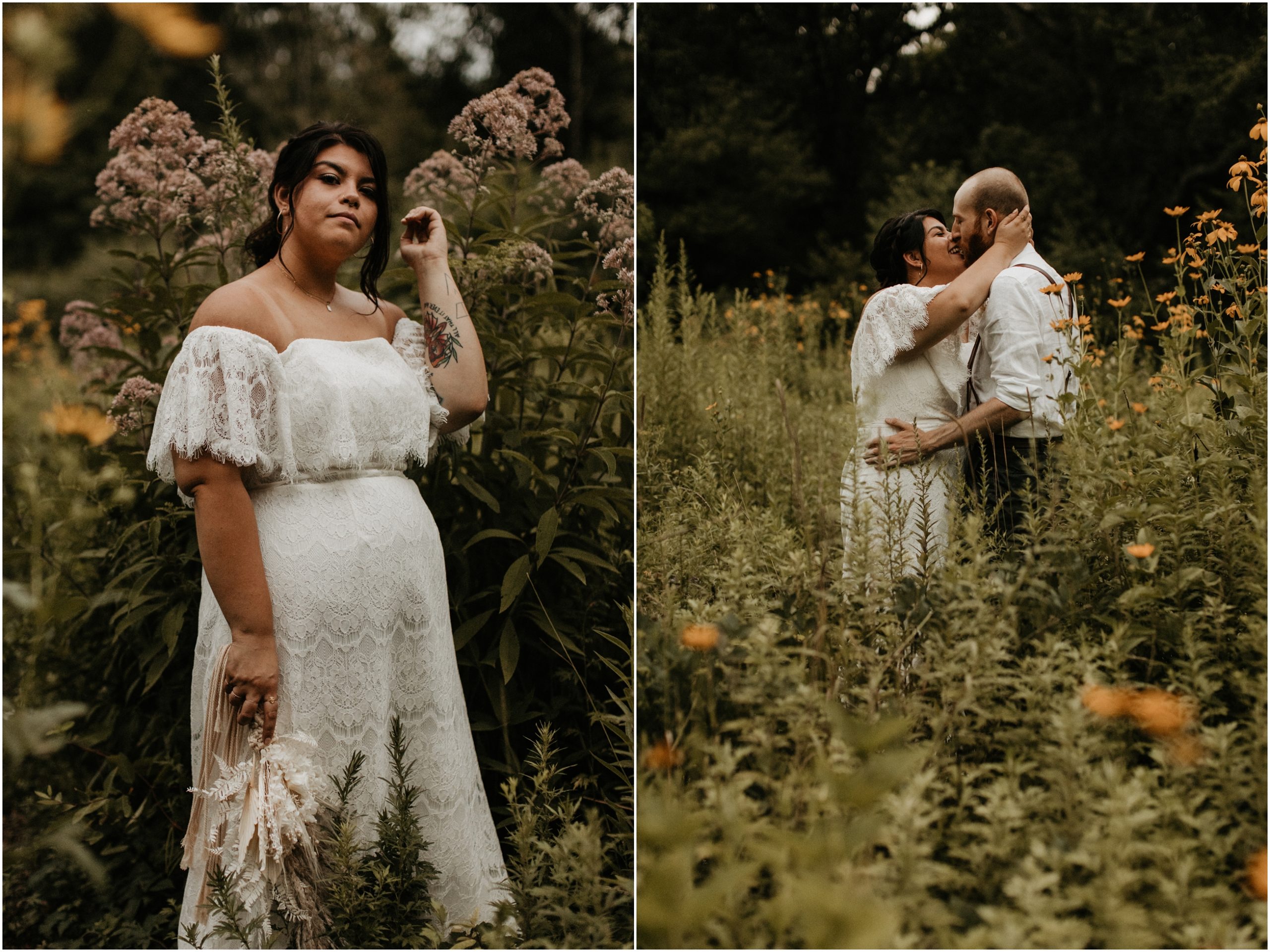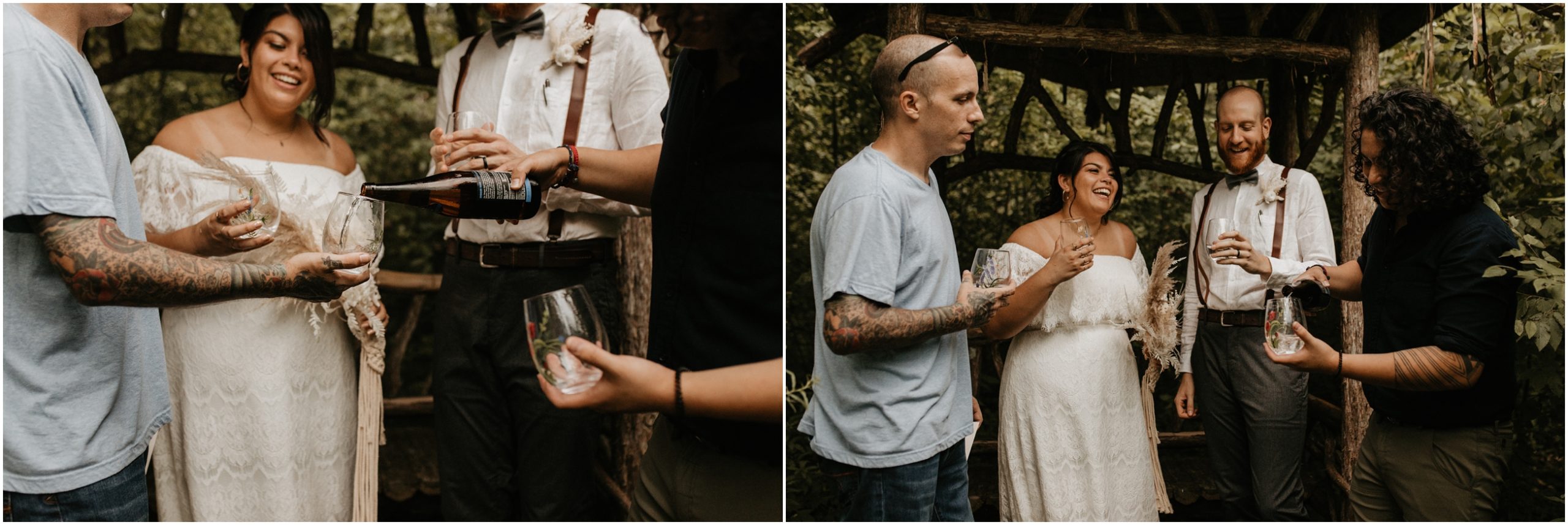 They found this hidden whimsical elopement spot just a day or so before their big day, and it all worked out so perfectly! It was totally secluded and absolutely stunning. I loved how engulfed in nature we felt, as these two are vegans like me, and I know nature means a lot to them! They’re up for any hiking adventure, like their waterfall engagement session in another part of this same reservation! Ahhh, this elopement was relaxed, romantic, and so totally THEM from their celestial details to their moody portraits to their vegan brownies and Saki to celebrate! Such a perfect day!!