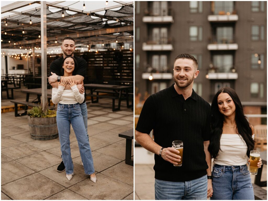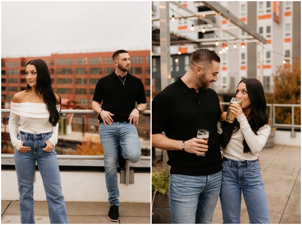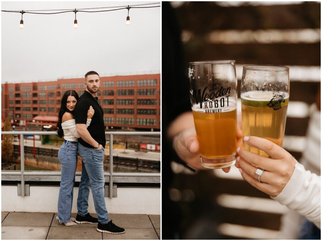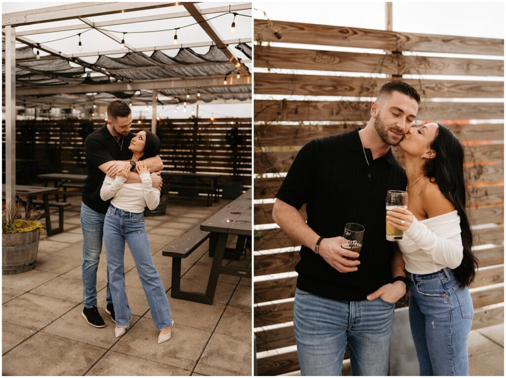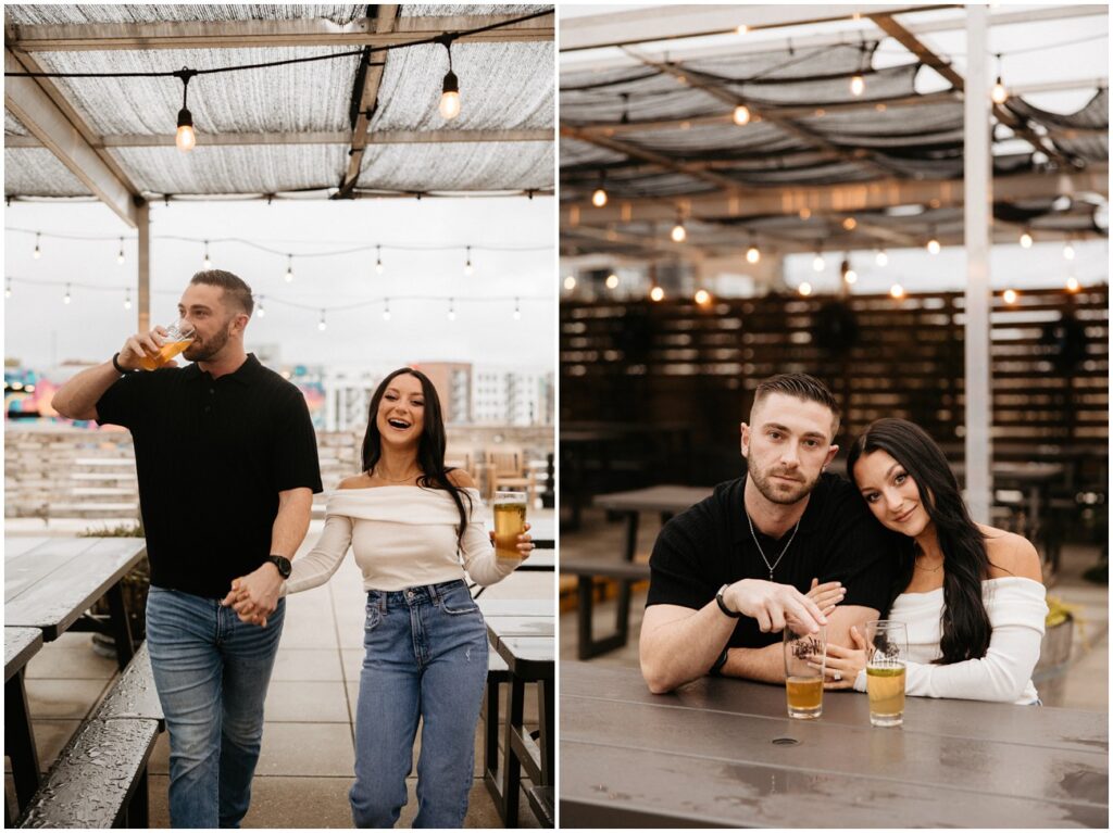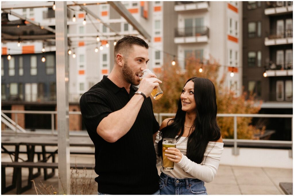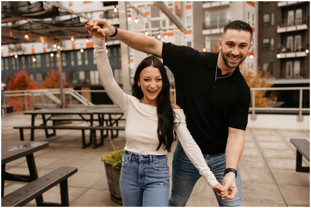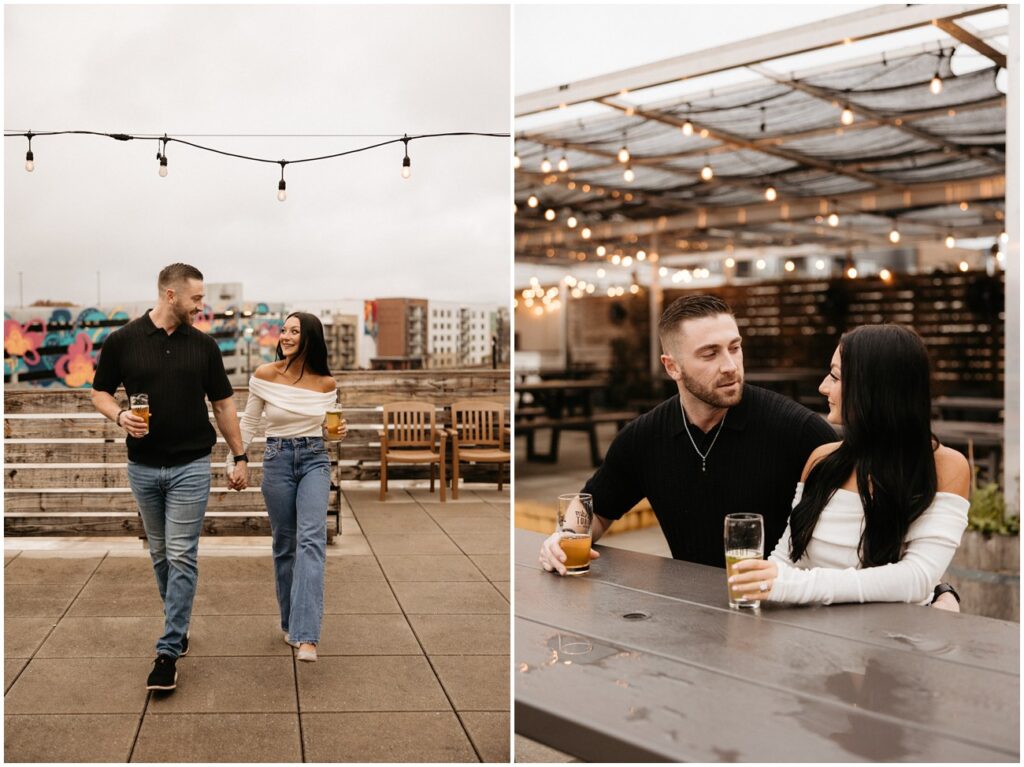 WHEW get ready for part 1 of Tori and Connor’s 3-day engagement session! We kicked off my trip to Charlotte, NC at one of their favorite local breweries – Wooden Robot! We were super lucky that the weather was a little dreary because nobody was up on the rooftop. Having the space to ourselves made for such fun and unique pictures doing what they love to do! 🙂